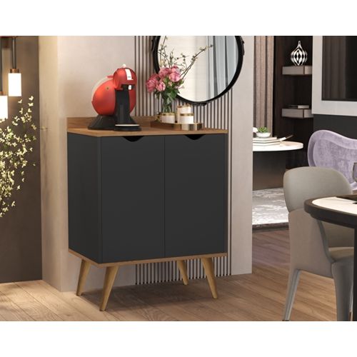 Aparador 2 Portas Buffet 4545 Pés Palito - Preto / Caramelo