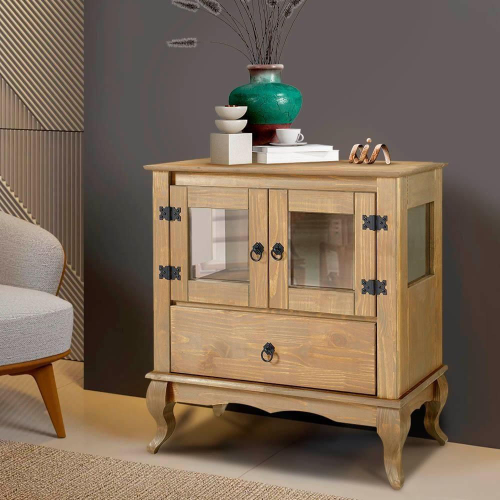 Aparador 2 Portas Vidro Lateral Madeira Maciça Rústico Mel D120vl Shop Jm