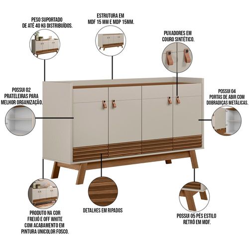 Aparador Buffet Para Sala de Jantar 160 cm 04 Portas Mason L05 Freijó Off White - Lyam Decor