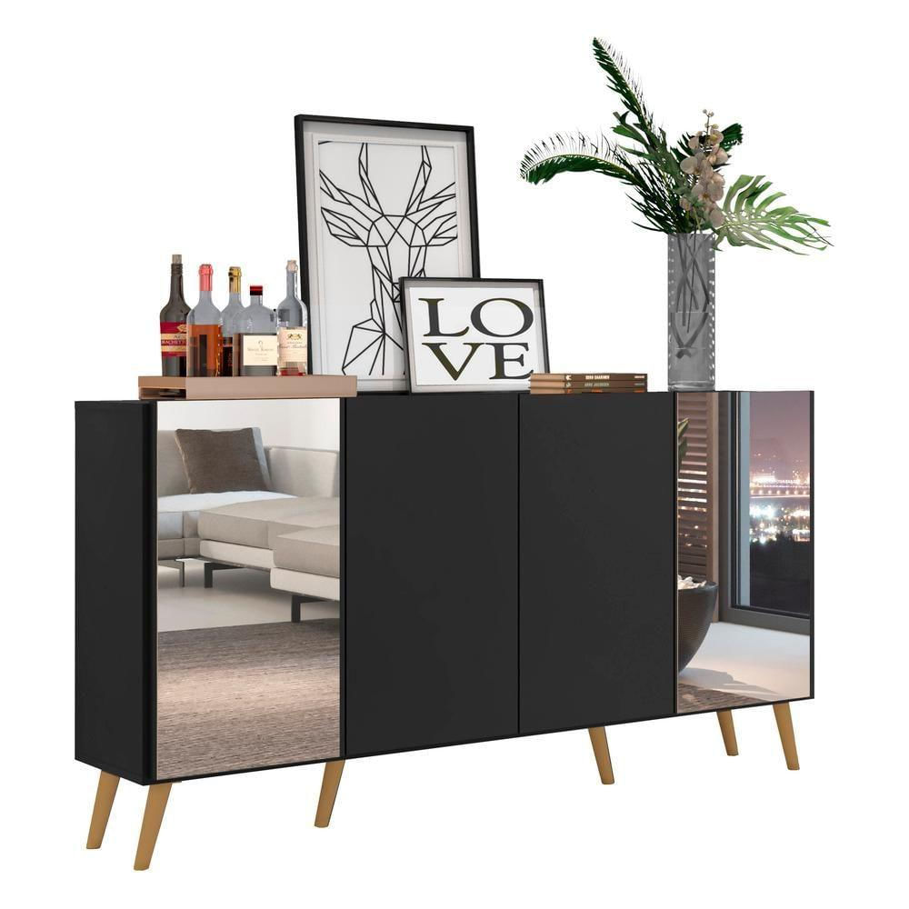 Aparador Buffet Retrô Com Espelho Multimóveis Preto/natural