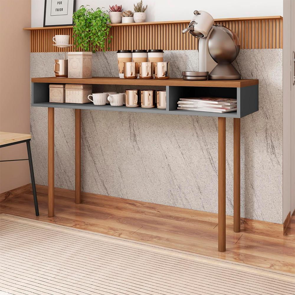 O Aparador Multi é uma peça curinga, seja para hall de entrada, sala de estar ou quarto. Com design moderno contendo formato retangular e cilíndricos, garante um charme todo especial ao ambiente. Possui tampo, 1 nicho aberto e 1 nicho fechado. Permitindo guardar objetos de uso constante ou que deseje expor, dando aquele Up na decoração.Dimensões do Produto (cm) Altura: 78 Largura: 120 Profundidade: 36 Peso: 16,14kgCaracterísticas Técnicas Dimensões da embalagem (Comp x Larg x Alt) (cm) 1 Volume - 42,2 x 128,2 x 11,5 Peso do produto com embalagem (Kg) 17,14 Tonalidade do produto Chumbo BP/Nogueira Material da estrutura MDP de 15mm e 25mm de espessuras. Acabamento U.V Possui nicho 2 Possui pés 4 Peso máximo que suporta - Distribuído Nicho pequeno - 2kg, Nicho maior - 3kg e Tampo - 5kg. Acompanha manual de montagem Garantia 90 dias contra defeito de fabricação. Este móvel chegará em sua casa separado em 1 volume.Informações ImportantesRecomendações de limpeza e Manutenção: Limpar com pano macio, seco ou úmido, sem uso de produtos abrasivos. Pois, podem trazer danos ao produto.Sobre a entrega: - As transportadoras contratadas, não realizam entregas em apartamentos. Realizando assim a entrega na portaria do prédio