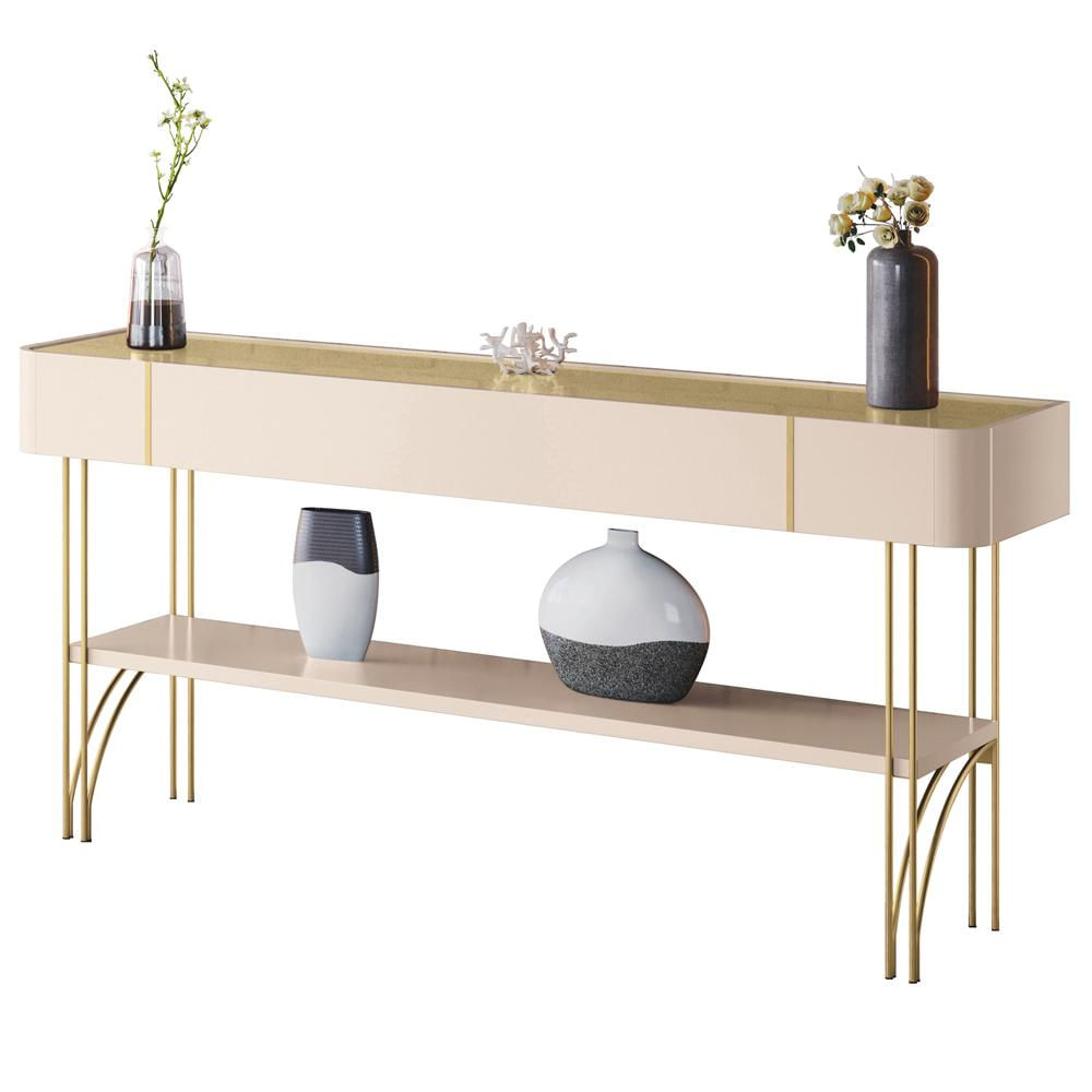 Com o Aparador Decorativo Industrial Sala de Estar Jantar La Vie B01 Off White Champagne, da Lyam Decor, o seu ambiente ganhará um toque de requinte e sofisticação expressos em um design contemporâneo e funcional.