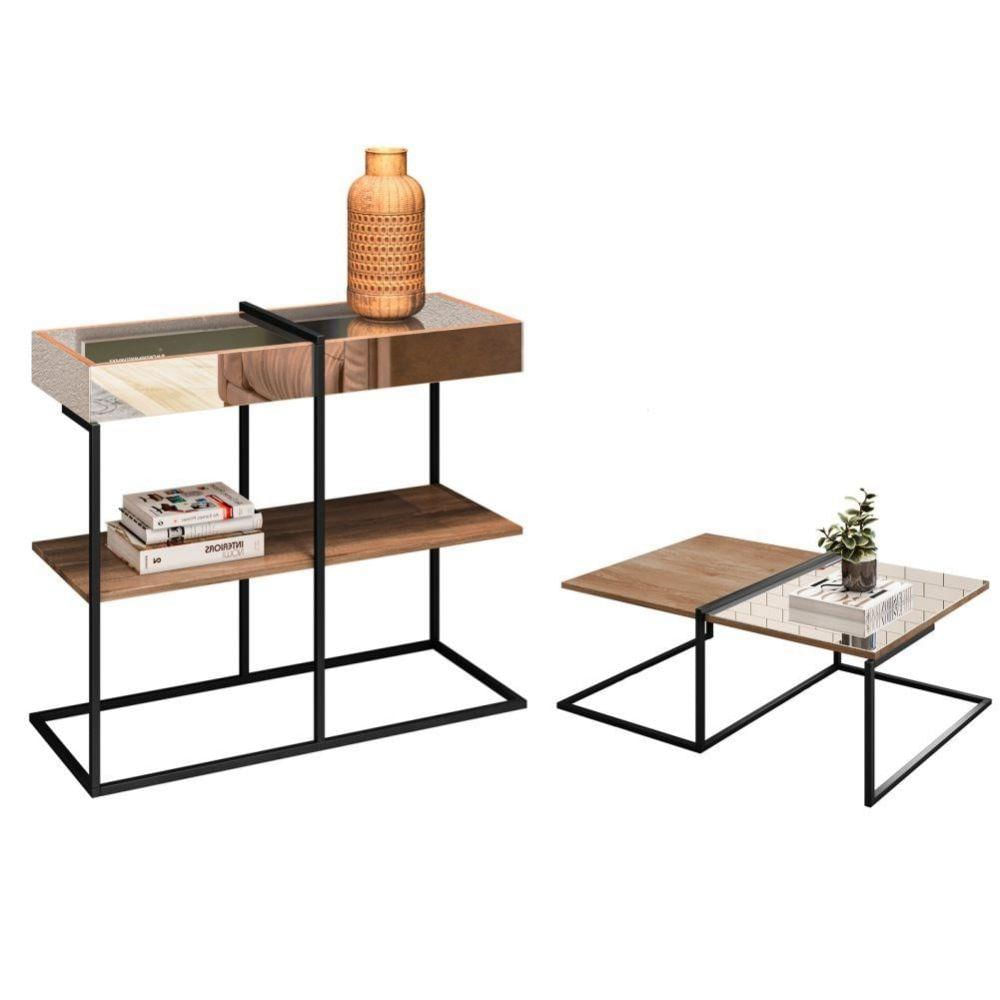 Aparador Espelhado 1 Prateleira E Mesa De Centro Com Espelho Pés Metálicos Estilo Industrial Loft D09 Demolição/preto - Mpozenato