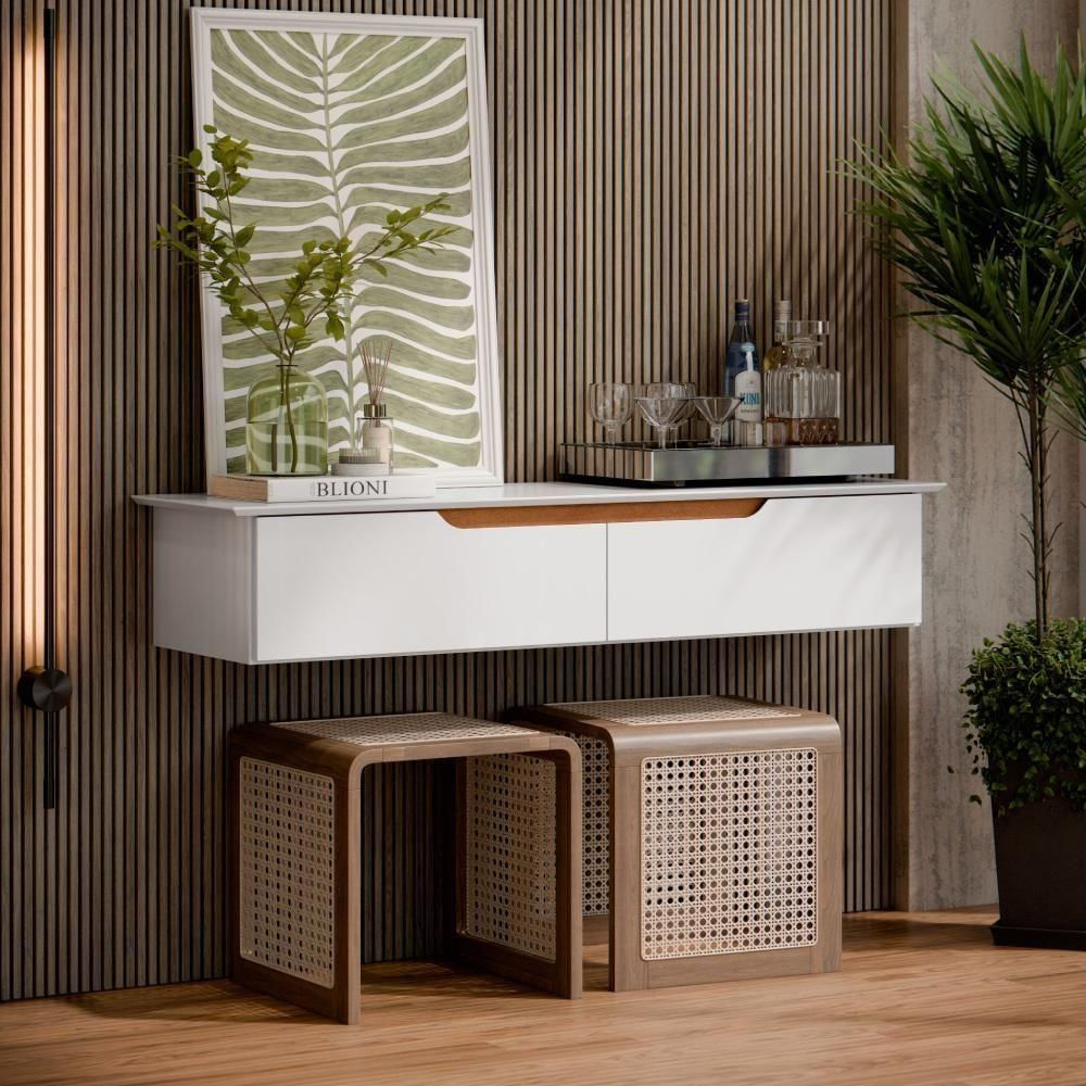 - Versatilidade de Uso: Pode ser utilizado como aparador, buffet, rack suspenso ou organizador de parede, se adaptando a diversos ambientes.
