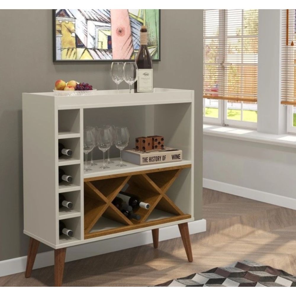 Aparador Retrô Pés Palito com Adega Malibu - Off White com Freijó - Comprar Moveis Em Casa