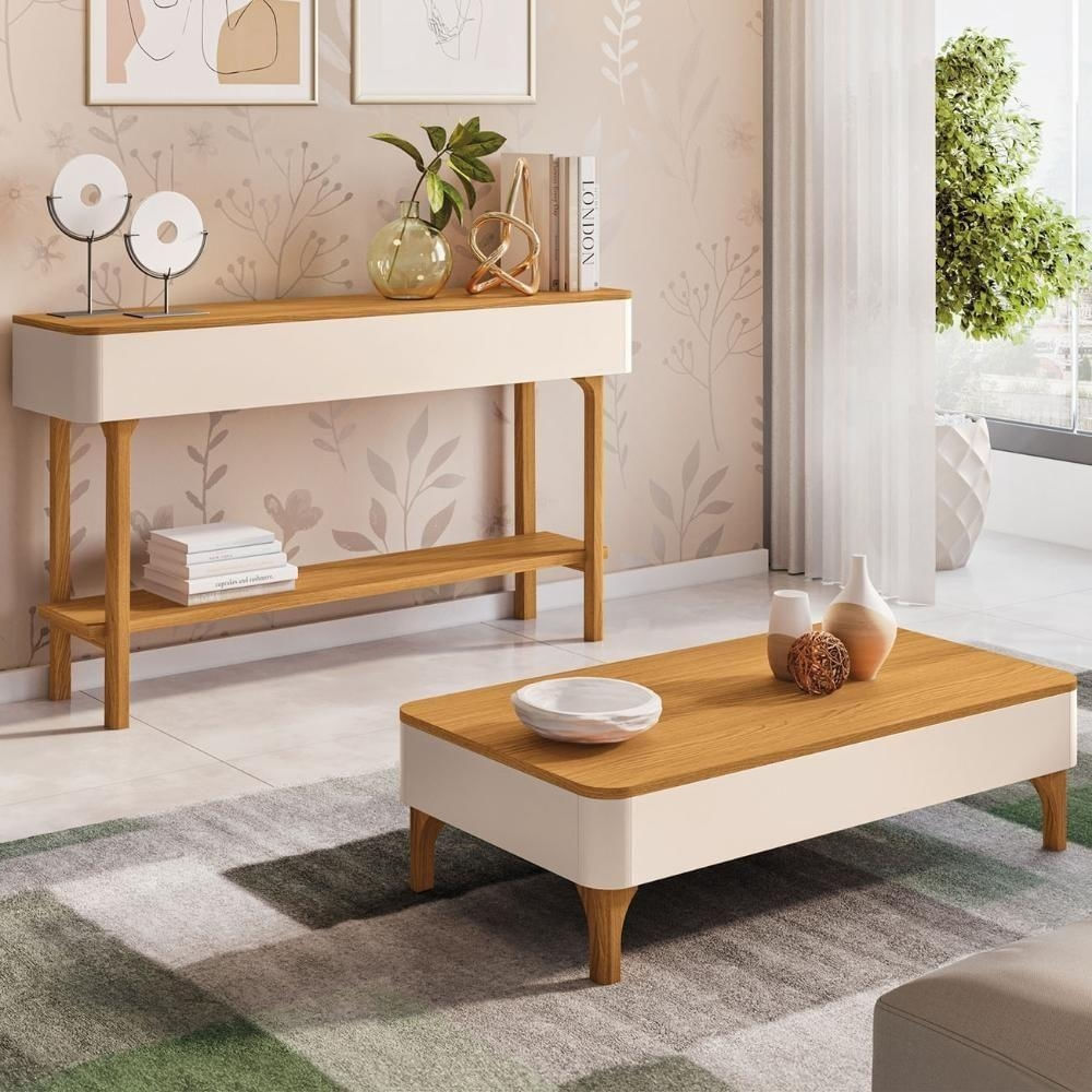 Aparador Sala De Estar Fiero E Mesa De Centro Liz Off/cinamomo - Hb Móveis