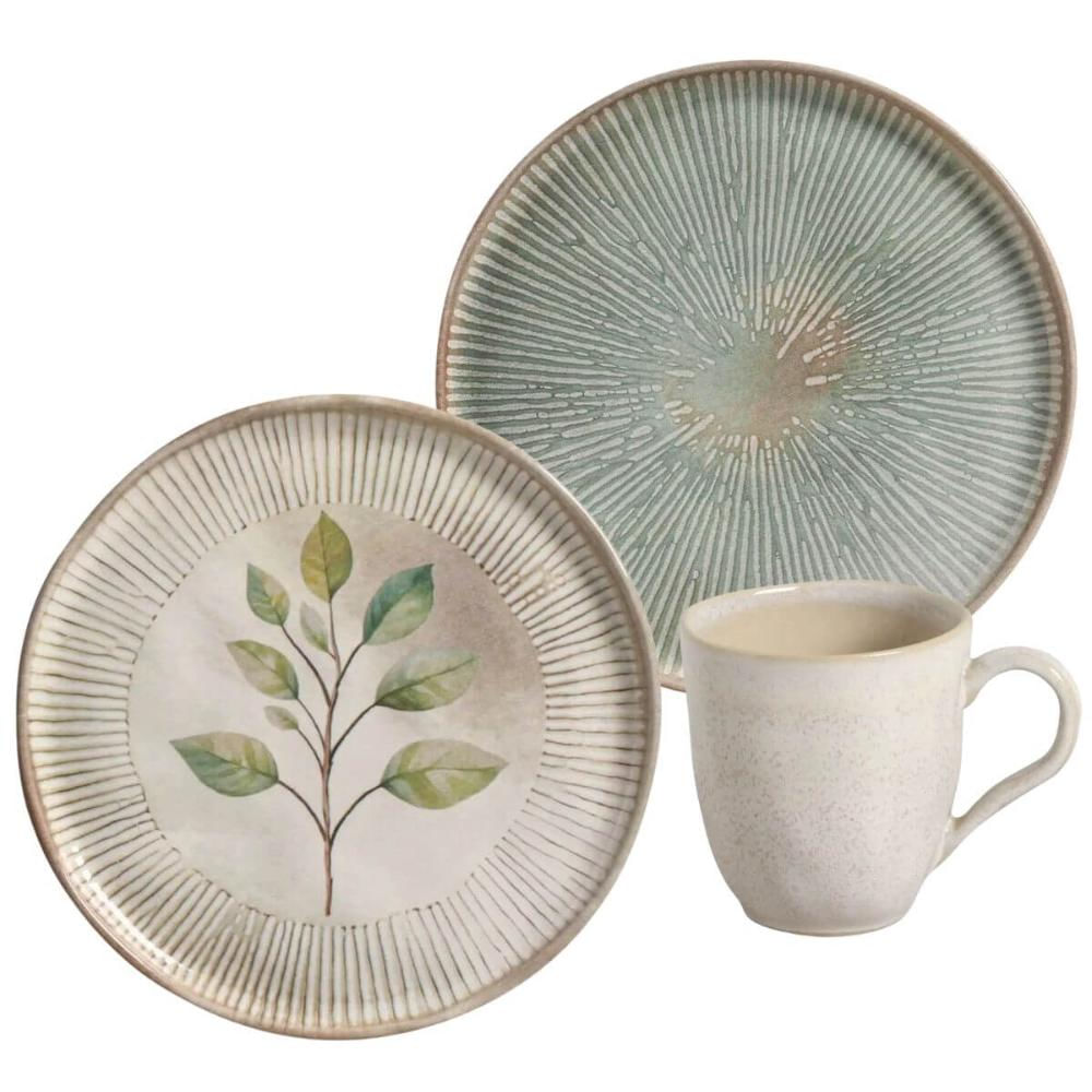 Aparelho de Jantar 12 Peças Pratos Rasos Sobremesa e Canecas Cerâmica Porto Brasil Mesa Posta