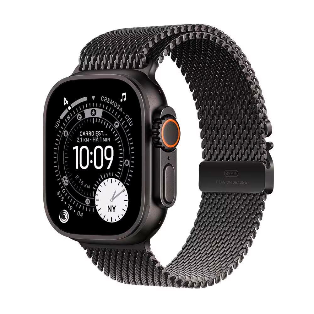 O Apple Watch Ultra 3 GPS + Cellular 49mm combina resistência, tecnologia e desempenho incomparável para quem busca o smartwatch mais completo da Apple. Criado com caixa de Titânio Grau 5 e tela de cristal de safira, é feito para enfrentar qualquer desafio, do treino ao mergulho. Tela