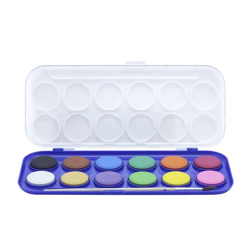 Aquarela Escolar Cis Estojo com Pastilhas de Tintas 12 Cores com 1 Pincel Artístico