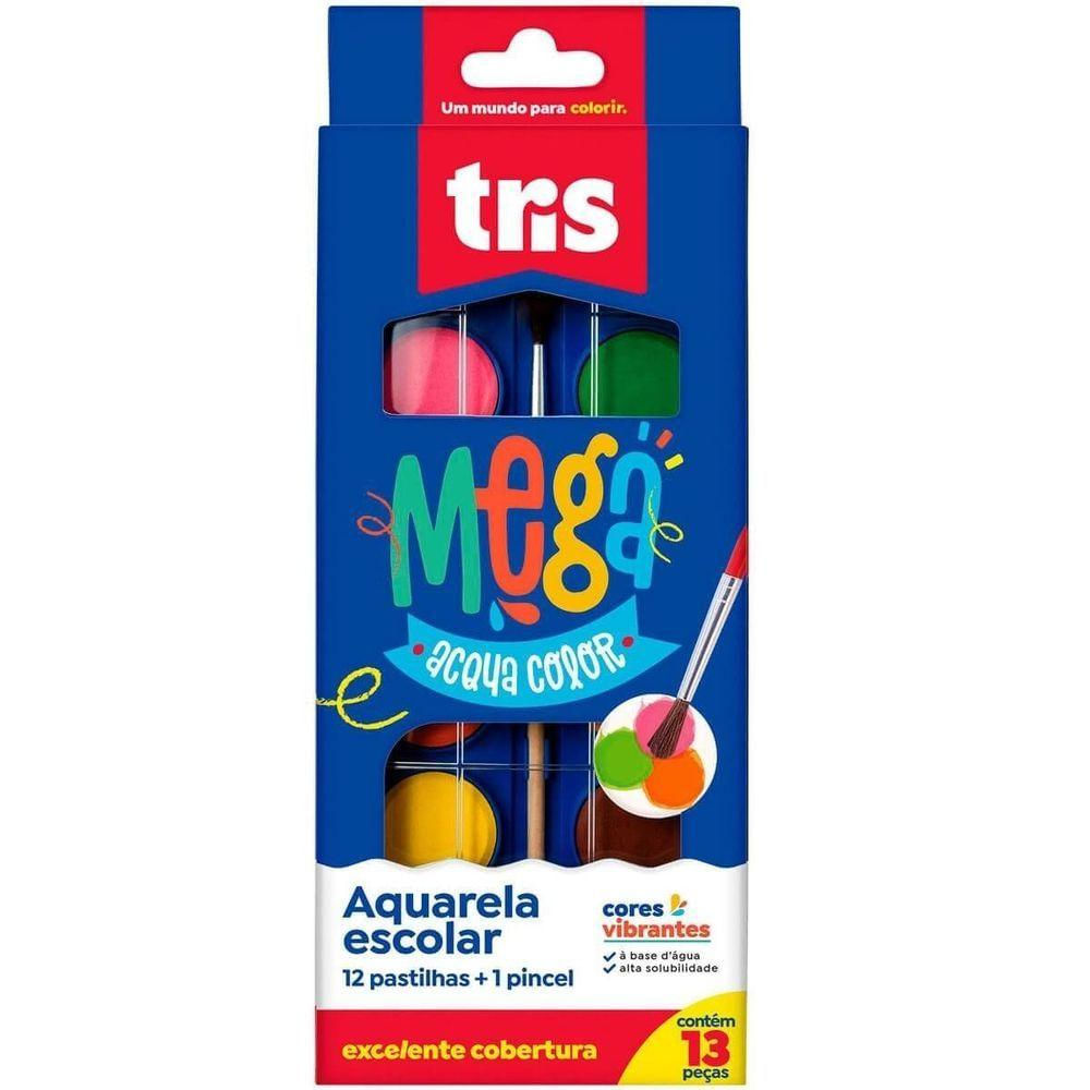 Cor: Multicor;Material: Pigmentos, carga inerte, aglutinantes e conservantes; Informações Adicionais: Agora com 12 cores vibrantes pra você explorar pinturas e misturas; Conteúdo da Embalagem: 01 estojo com 12 cores e 01 pincel; Dimensões do Produto: (AxLxP) 20,5 x 8,5 x 1,5cm. Acompanha o produto: - 1 Aquarela Mega Acqua Color 12 Cores TRIS Garantia: - 7 dias Contra Defeitos de Fabricação