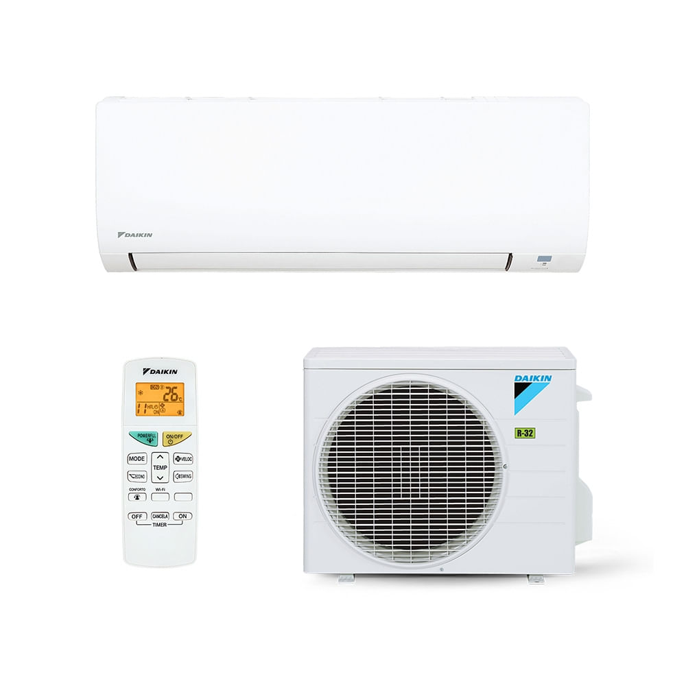 Ar Condicionado Split Hi Wall Full - Inverter R-32 - Daikin - 18.000 BTUs - Frio - 220V Monofásico Novo Ar-Condicionado Daikin Split Hi Wall EcoSwing Smart R-32: Eficiência e Tecnologia Japonesa O Novo Daikin EcoSwing Smart R-32 chega ao mercado brasileiro para redefinir os padrões de climatização residencial. Unindo a lendária engenharia japonesa com a mais alta eficiência energética do mercado, este modelo é a escolha definitiva para quem busca conforto térmico, economia real na conta de luz e compromisso com a sustentabilidade. Eficiência Energética de Elite (Classe A Inmetro) Equipado com a nova geração de compressores EcoSwing, o aparelho supera as rigorosas normas do Inmetro, garantindo a classificação Índice de Desempenho Resfriamento (IDRS) nota A. O uso do fluido refrigerante R-32 é o grande diferencial: possui baixo potencial de aquecimento global (GWP), é mais eficiente na troca térmica e permite uma redução significativa na carga de fluido no sistema. Tecnologia e Conectividade Smart Controle o clima da sua casa de onde estiver. Com o Wi-Fi integrado e o aplicativo Daikin Smart AC, você gerencia todas as funções pelo smartphone ou via comando de voz através da Alexa ou Google Assistente. O design moderno da unidade interna (evaporadora) apresenta um painel discreto com display "soft light", que pode ser desligado para não interromper seu sono. Diferenciais que Fazem a Diferença: Compressor EcoSwing: Tecnologia exclusiva com vedação superior, que reduz o atrito e a vibração, resultando em um funcionamento ultra silencioso e maior durabilidade. Conforto Térmico Avançado: Função Powerful para resfriamento rápido e aletas com tratamento Blue Fin, que garantem maior resistência à corrosão e maresia. Ar Mais Puro: Sistema de filtragem dupla com Filtro de Íons de Prata, eliminando bactérias e mantendo o ambiente saudável para sua família. Silêncio Absoluto: Unidades projetadas para operar com o mínimo de ruído, ideal para quartos e escritórios.