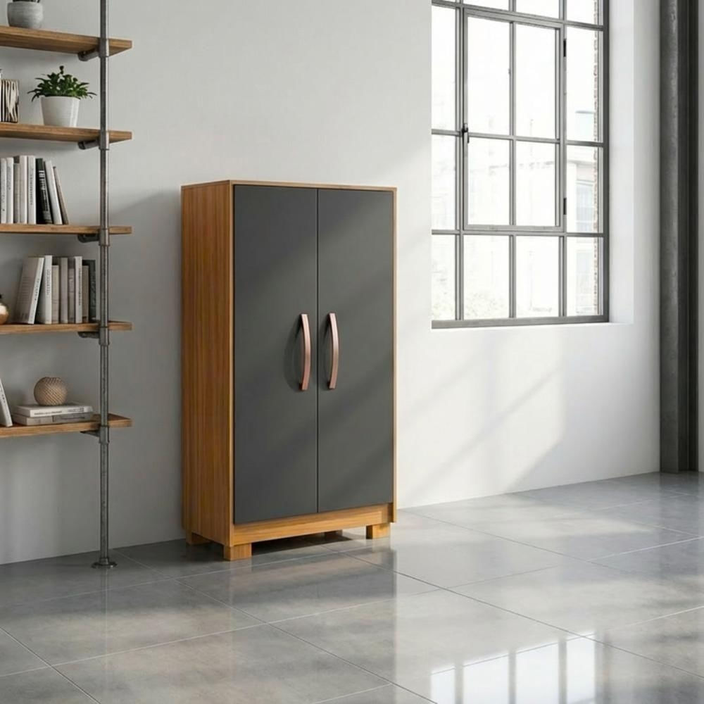 Armário 2 Portas Carvalho Grafite Em Mdp Compacto Moderno