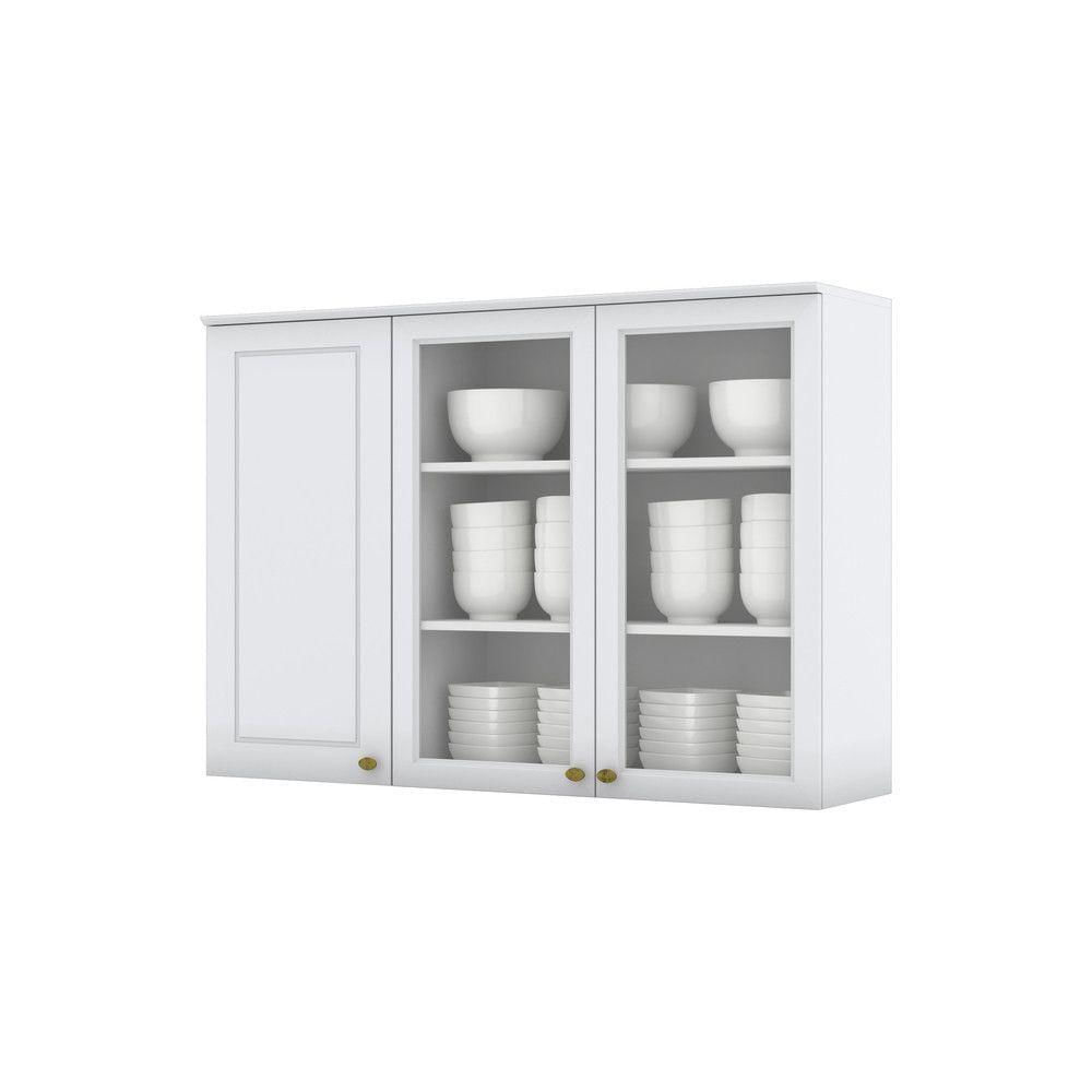Armário Aéreo 120 Cm 03 Portas De Vidro Amy Branco Hp Casa 812 Branco Hp