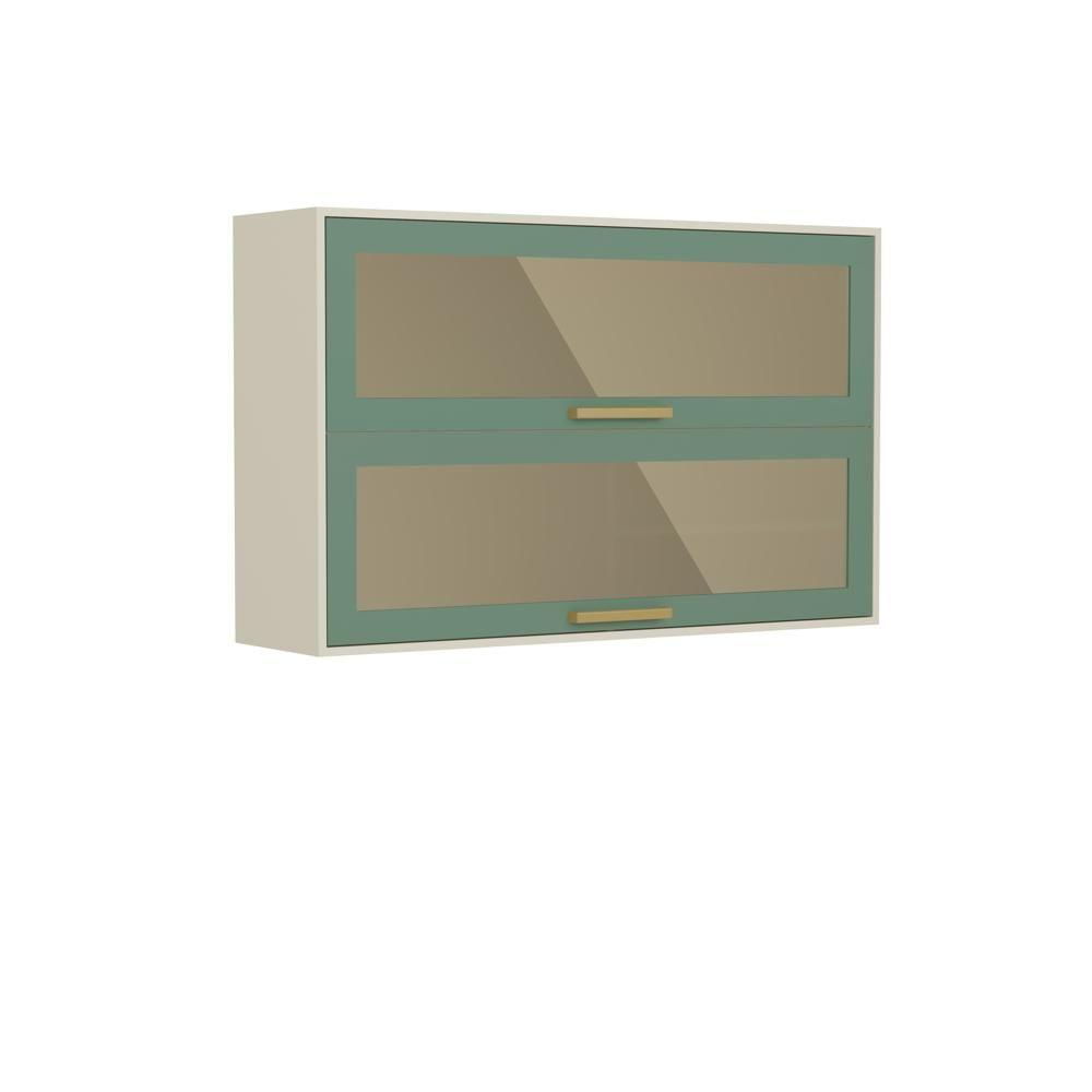 Armário Aéreo 2 Portas Basculantes De Vidro Verde Bertolini Verde/areia