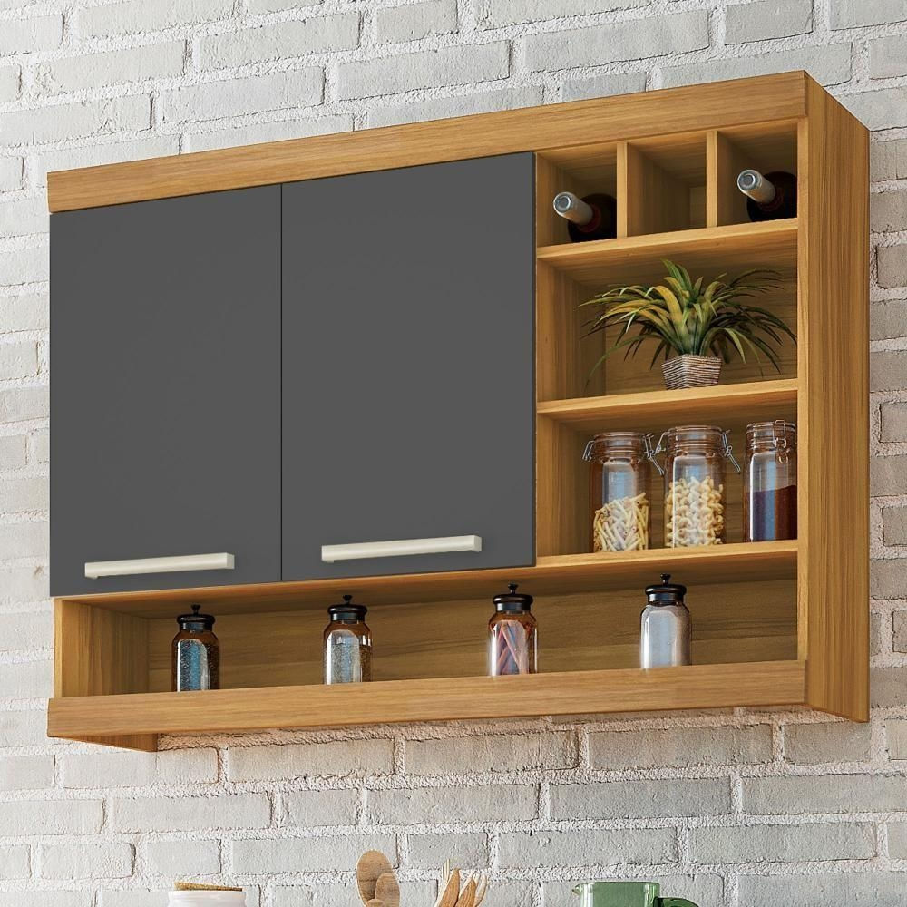 Armário Aéreo 2 Portas Com Adega Freijó/grafite Burguesa Nesher Freijó/grafite