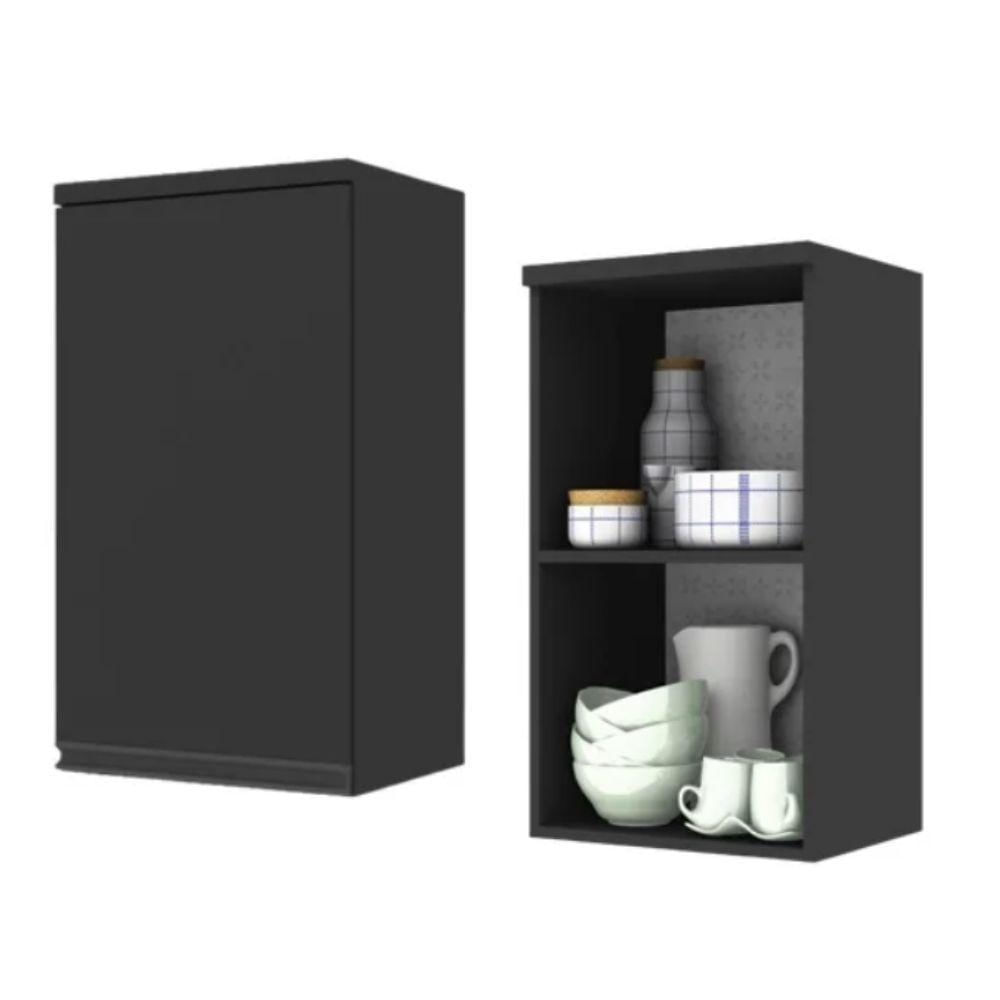 O Armário de Parede para Cozinha 40 cm para Dispensa é a escolha ideal para quem busca organização, praticidade e um design moderno. Compacto e funcional, oferece armazenamento eficiente para mantimentos, utensílios e itens do dia a dia, valorizando o ambiente com um visual elegante e bem distribuído.Fabricado em MDP com espessura de 1,5 cm, com tampo superior em MDP de 2,5 cm, garante resistência, estabilidade e durabilidade no uso diário. Possui dobradiças tipo caneco de 3,5 cm, que proporcionam abertura e fechamento suaves, com fechamento automático por amortecimento anti-impacto, oferecendo mais conforto e proteção ao móvel. O perfil puxador em alumínio com ponteiras em ABS completa o acabamento moderno.O produto acompanha cantoneiras metálicas e parafusos para fixação segura na parede. O acabamento recebe sete camadas de pintura UV, assegurando visual uniforme, maior resistência e proteção contra desgaste.Indicado para cozinhas planejadas ou compactas, áreas de despensa, lavanderias e ambientes que exigem otimização de espaço com armário aéreo funcional.Cuidados e limpeza: limpar com pano levemente umedecido e pano seco. Evitar produtos abrasivos ou solventes químicos. Garantir instalação correta para segurança e estabilidade do armário.Ficha TécnicaTipo: Armário de parede / armário aéreoAltura: 40 cmAltura: conforme padrão do fabricanteQuantidade de portas: 1Tipo de porta: BasculanteMaterial da estrutura: MDPEspessura da estrutura: 1,5 cmMaterial do tampo superior: MDPEspessura do tampo superior: 2,5 cmDobradiças: Tipo caneco 3,5 cm com fechamento automático e amortecimentoPuxador: Perfil em alumínio com ponteiras em ABSAcabamento: Pintura UV com 7 camadasFixação: Parede, com cantoneiras metálicas e parafusosIndicação de uso: Cozinha, despensa e lavanderiaConteúdo da embalagem: 1 armário e kit de ferragensMontagem: Necessita montagem e instalação na paredeDestaquesEstrutura em MDP resistenteDobradiças com fechamento suave e anti-impactoPerfil puxador em alumínioFixação segura na paredePintura UV durável e acabamento sofisticadoDesign moderno, compacto e funcionalTipo de móveis de cozinha: Armário | Requer montagem: Sim | Cor: Onix
