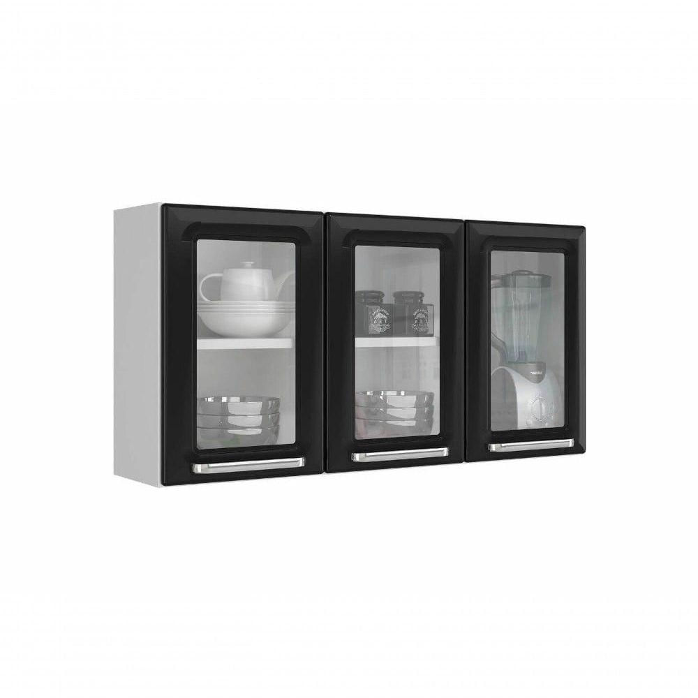 Armario Aéreo Com Vidro Cozinhas Itatiaia Luce - 3 Portas - Preto