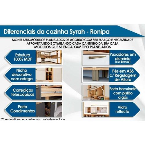 Armário Aéreo Cozinha Modulado Syrah Nicho Com 2 Portas Basculante 80cm Amendoa-off White - Ronipa