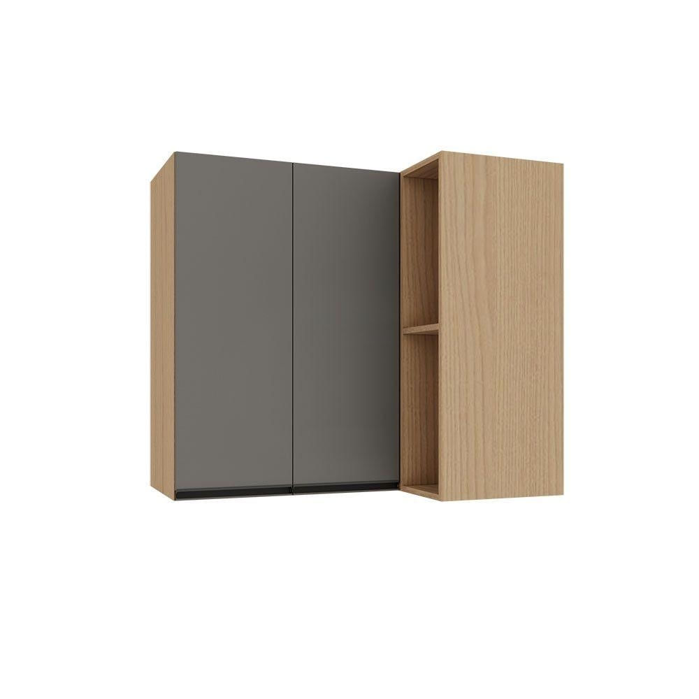 Armário Aéreo De Canto Reto 95cm 2 Portas Essenza Luciane Mó Andorra/cinza Puro