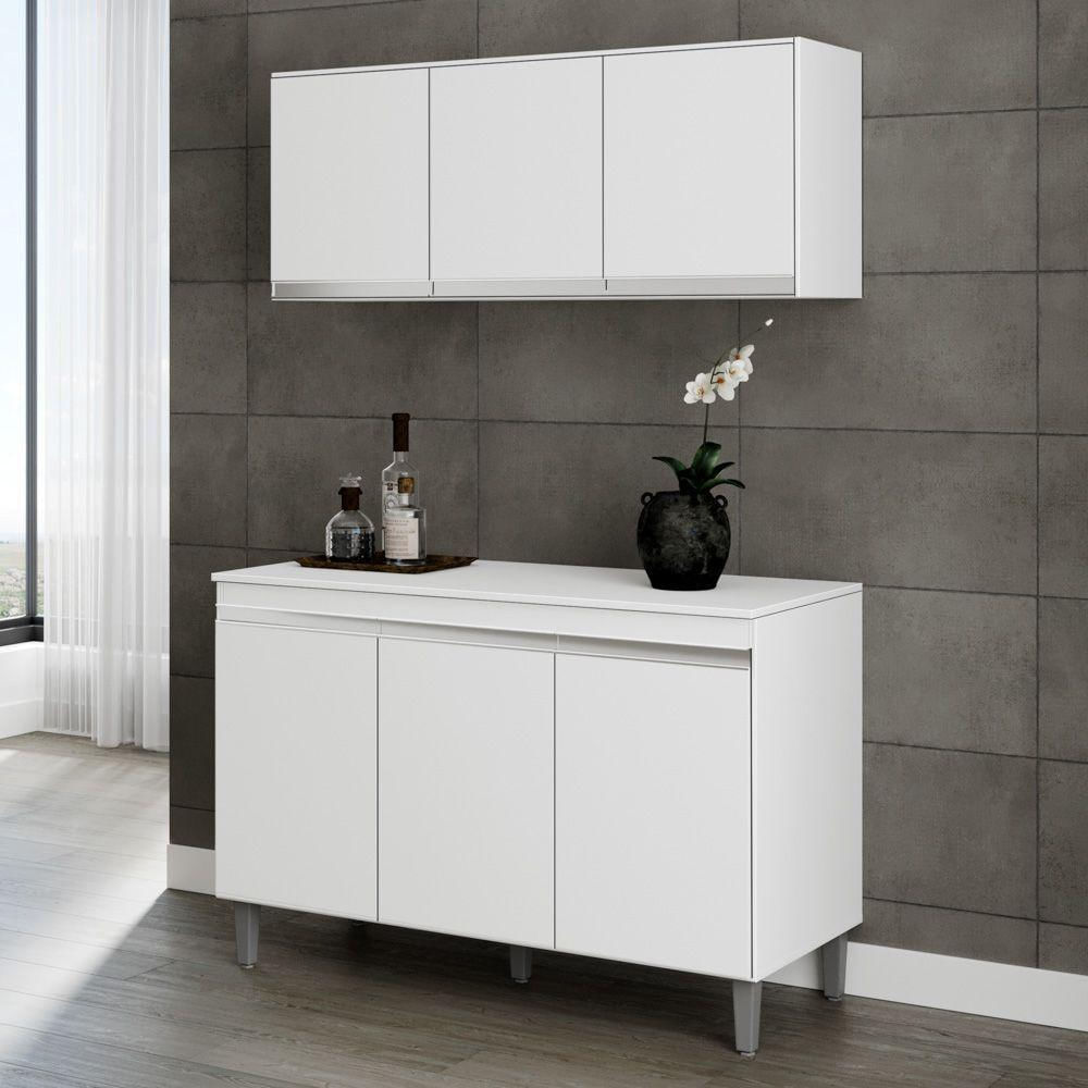 Armário Aéreo E Balcão Gabinete Manu 120cm 3 Portas Branco