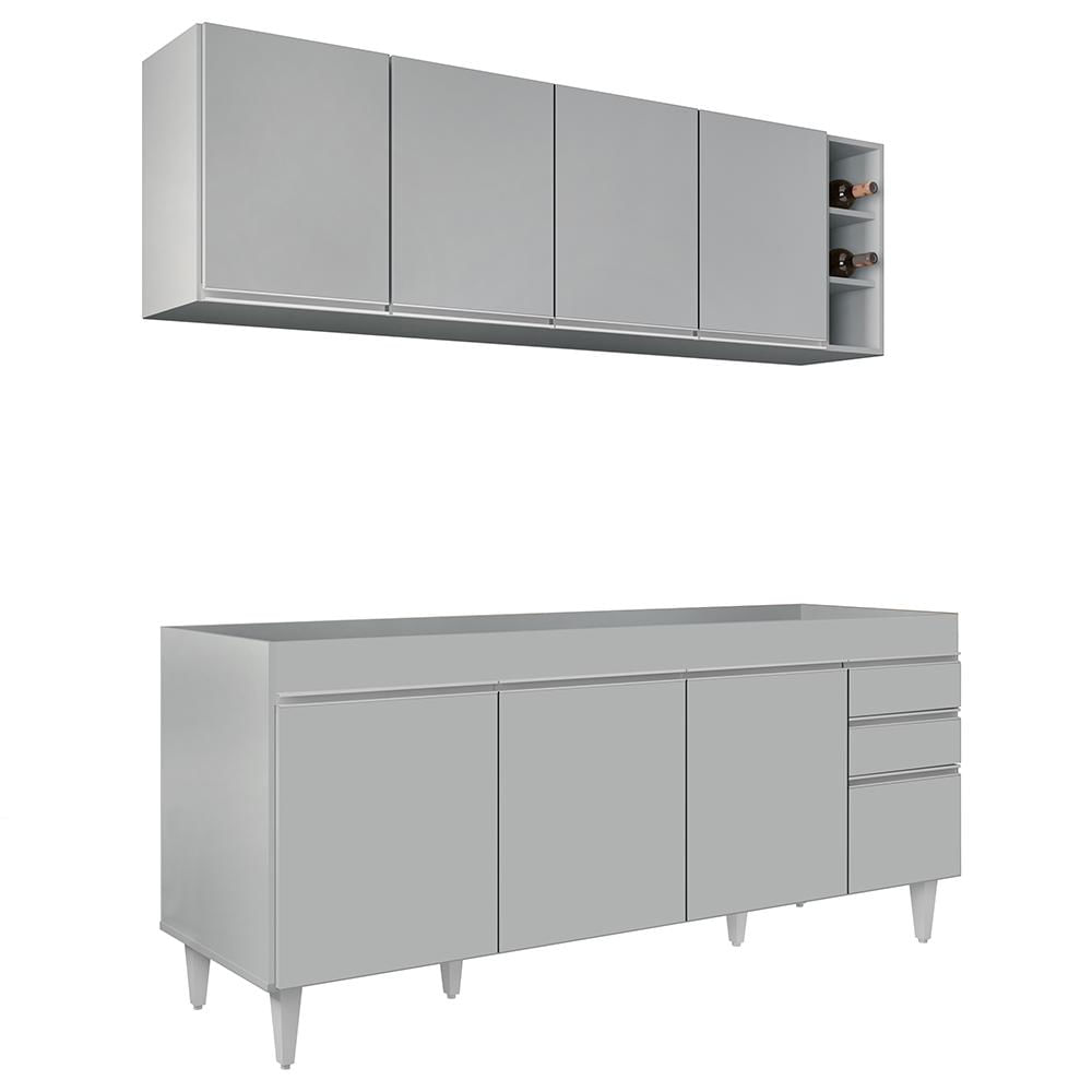 Armário Aéreo Nevada e Balcão para Pia 180cm Dallas Cinza Claro - Lumil