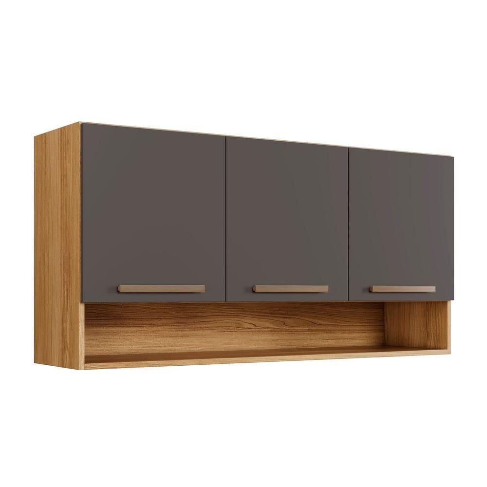 Armário Aéreo New 3 Portas Arte Móveis Cinamomo/grafite