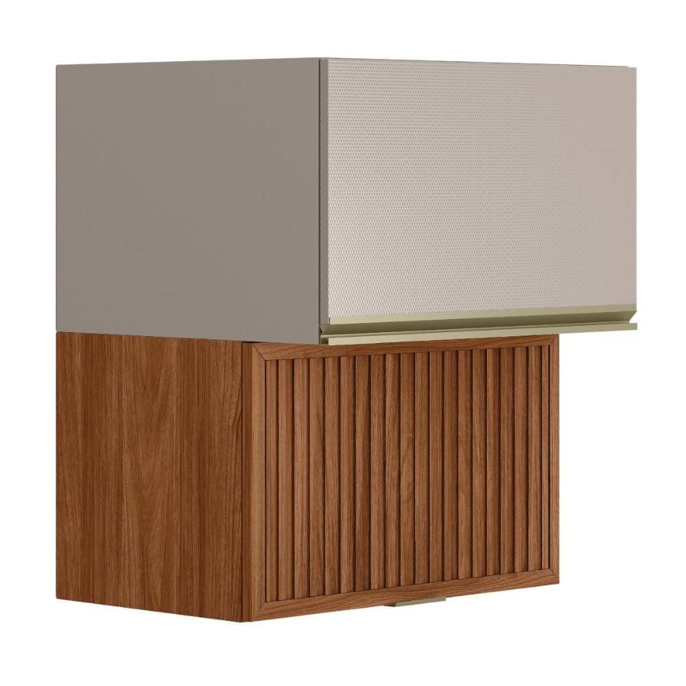 Armário Aéreo Proença 60cm Basculante 1 Porta Mdf E 1 Porta Ripada Nogueira Touch/nude Prime Tx
