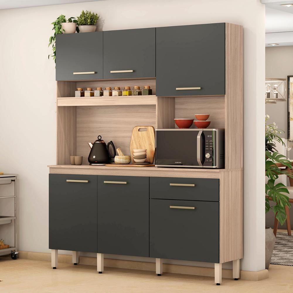 Armário Cozinha Compacta 6 Portas 1 Gaveta 1 Nicho Alamo - Avena / Grafito Avena / Grafito