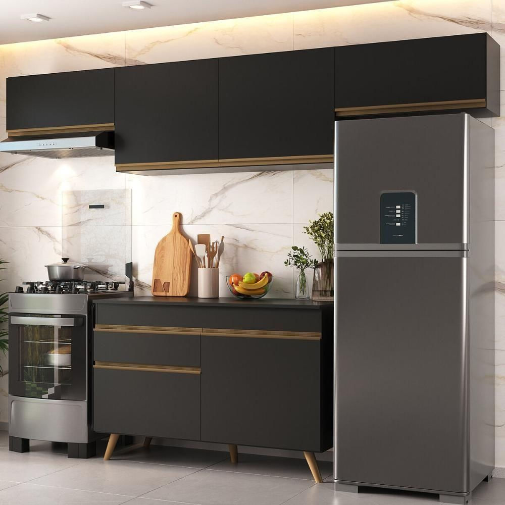 O produto será entregue desmontado e não disponibilizamos o serviço de montagem. Acabamento: Pintura UV | Tonalidade: Preto | Material: MDP | Referência do Modelo: MP3766 | Coleção: Veneza | Instruções de Cuidado: Limpar com pano seco para retirar o pó. Não utilizar produtos químicos ou abrasivos a limpeza. Não aplicar lustra móveis. | Sistema de Montagem: O produto acompanha manual de montagem juntamente com kit ferragem. O produto será entregue desmontado e não disponibilizamos o serviço de montagem. | Produto Composto por: 1 armário aéreo 120cm, 2 armários aéreos 70cm, 1 balcão com tampo 120cm, manual de montagem e kit ferragem. | Altura Montado: 203 | Largura Montado: 260 | Profundidade Montado: 53 | Tamanho (L x A x P): 260 x 203 x 53 | Fabricante: Multimóveis | Requer Montagem: Sim | Quantidade de Portas: 6 | Quantidade de Gavetas: 1 | Quantidade de Prateleiras: 2 | Quantidade de Puxadores: 7 | Quantidade de Pés: 5 | Porta com Vidro: Não | Corrediça: Metálica | Material do Puxador: ABS | Material dos Pés: Polipropileno | Acompanha Pia Inox: Não | Balcão 120 cm compatível para uso de pia: Não | Tampo Incluso: Sim | Quantidade de Tampos: 1 | Material do Tampo: MDP | Espessura do Tampo: 1.5 | Com Prateleiras: Sim | Produto: Cozinha | Tipo: Modular | RBN: 17100674011 | Altura (cm): 203 cm | Largura (cm): 260 cm | Profundidade (cm): 53 cm | Acessórios incluídos: N/A | Altura do Produto com Embalagem: 27 cm | Ubicação do móvel: Não aplica | Largura do Produto com Embalagem: 65 cm | Comprimento do Produto com Embalagem: 125 cm | Peso do Produto com Embalagem: 67000 g | Tempo de Garantia: 3 meses | Destaque 1: Produzida em MDP: maior durabilidade e resistência. | Destaque 2: Tamanho do produto montado (L x A x P): 260 x 203 x 53 cm | Destaque 3: Módulos individuais: possibilitam a montagem conforme a disponibilidade do espaço. | Destaque 4: 6 portas e 1 gaveta com corrediças metálicas: amplo espaço interno para organização. | Destaque 5: Balcão com tampo de 15mm incluso. | Tipo de móveis de cozinha: Cozinha completa | Marca: Multimóveis | Materiais do corpo: MDP | Materiais das portas: MDP | Altura do armário: 54 cm | Largura do armário: 260 cm | Profundidade do armário: 32 cm | Altura do balcão: 84 cm | Largura do balcão: 120 cm | Profundidade do balcão: 53 cm | Modelo detalhado: N/A | Peso (kg): 67 kg | Estilo: Moderno | Capacidade máxima de peso: N/A | Com Pés ajustáveis: Não | Quantidade de caixas de embalagem: 03 | Peso do Produto: 67 | É personalizado: Não | Baterias são necessárias?: Não | Certificação de teste externa: Não aplicável | Is Fragile: Não | Peso do item: unit=kilograms;value=67 | Dimensões do item P x L x A: depth#value=53;depth#unit=centimeters;width#value=260;width#unit=centimeters;height#value=203;height#unit=centimeters | Quantidade de itens: 1 | Número da peça: MP3766.130 | Duração da Garantia: 3 Meses | Montagem: Necessita Montagem | Tipo de Garantia: Garantia do Fabricante | Inclui manual de montagem: Sim | Palavras-chave: armario de cozinha, cozinha completa, cozinha compacta, cozinha planejada, cozinha modulada, balcao de cozinha, balcao de pia, cozinha modular, balcao cozinha, armario cozinha | Peso do balcão (kg): N/A | Peso do armário (kg): N/A | Componentes incluídos: Kit de instalação | Tipo da embalagem do vendor: Sem embalagem adicional | Cor: Preto/Dourado