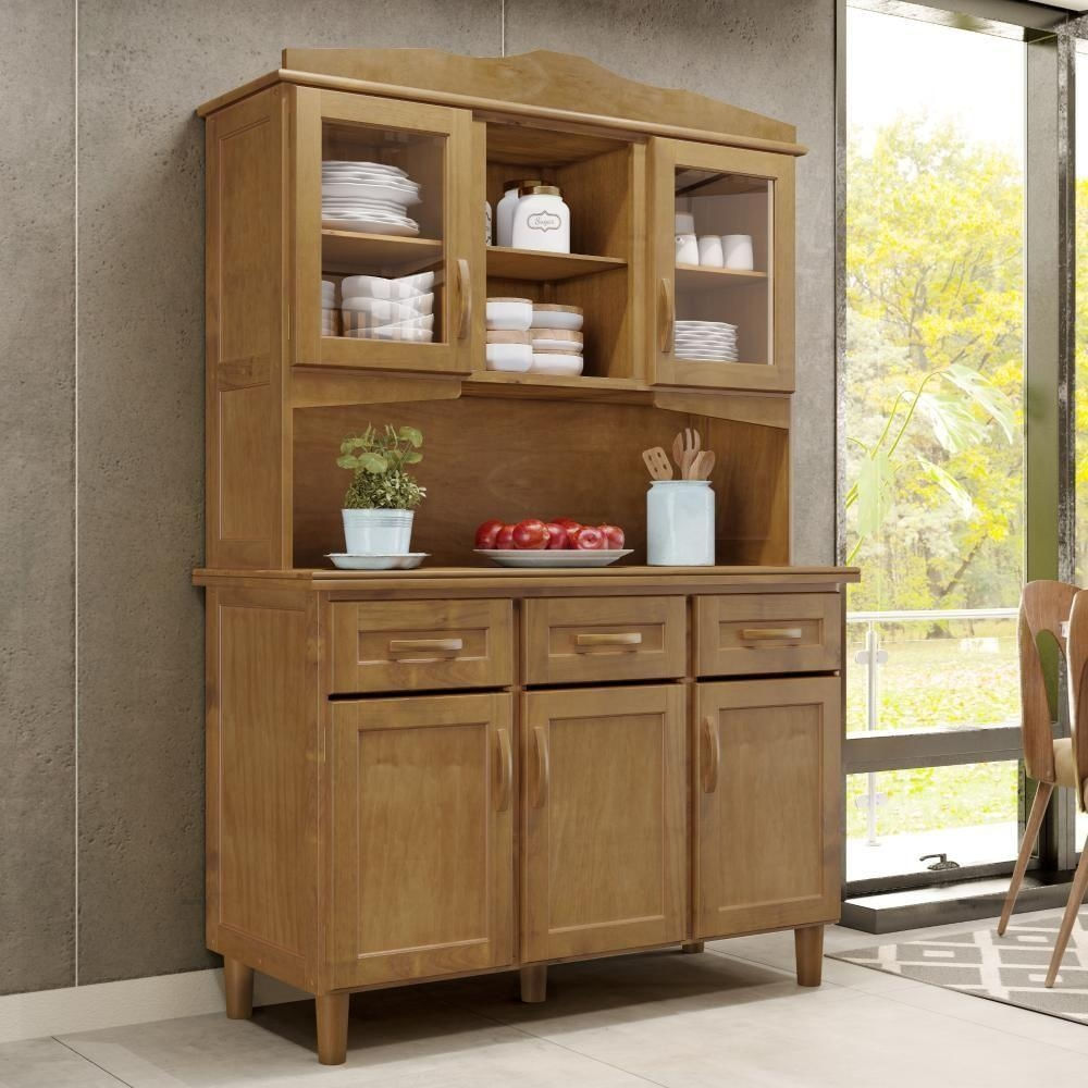 Armário Cristaleira Cozinha Brasil 5 Portas 3 Gavetas Imbuia Madeira Maciça Cavazotto Imbuia