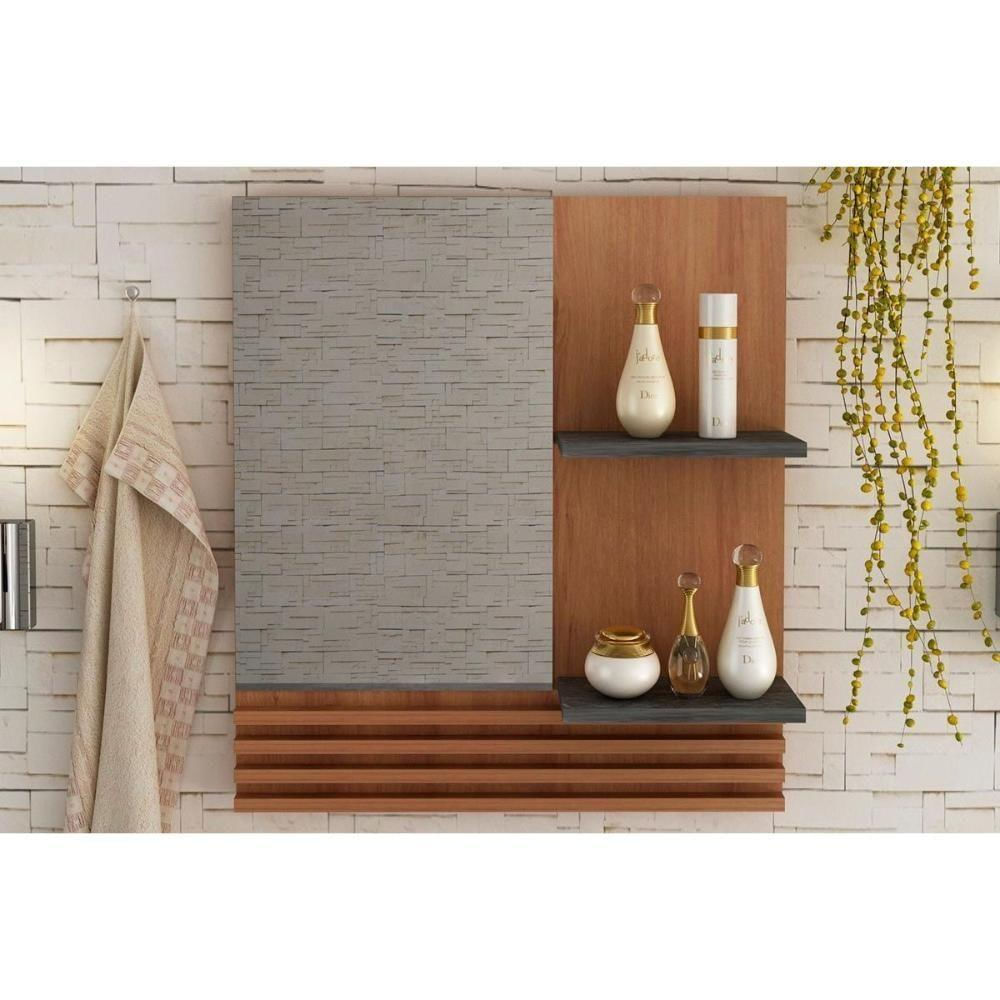Armário De Banheiro C-espelho Bn3614 2 Prateleiras 60cm Cor Amendoa-marmore Lunar - Tecno Mobili