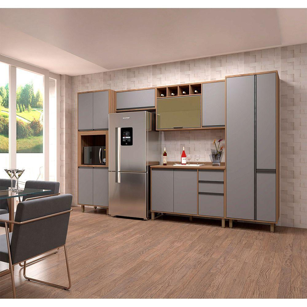Armário De Cozinha Completa 5 Peças Com Tampo Vanilla Com Cinza Puro Isa Luciane Móveis Vanilla Com Cinza Puro