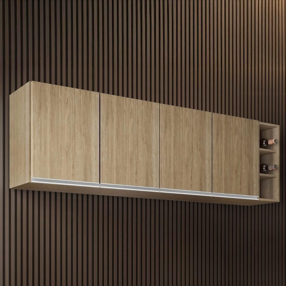 Armário De Cozinha Aéreo 180cm Nevada Com Nicho Castanho - Lumil