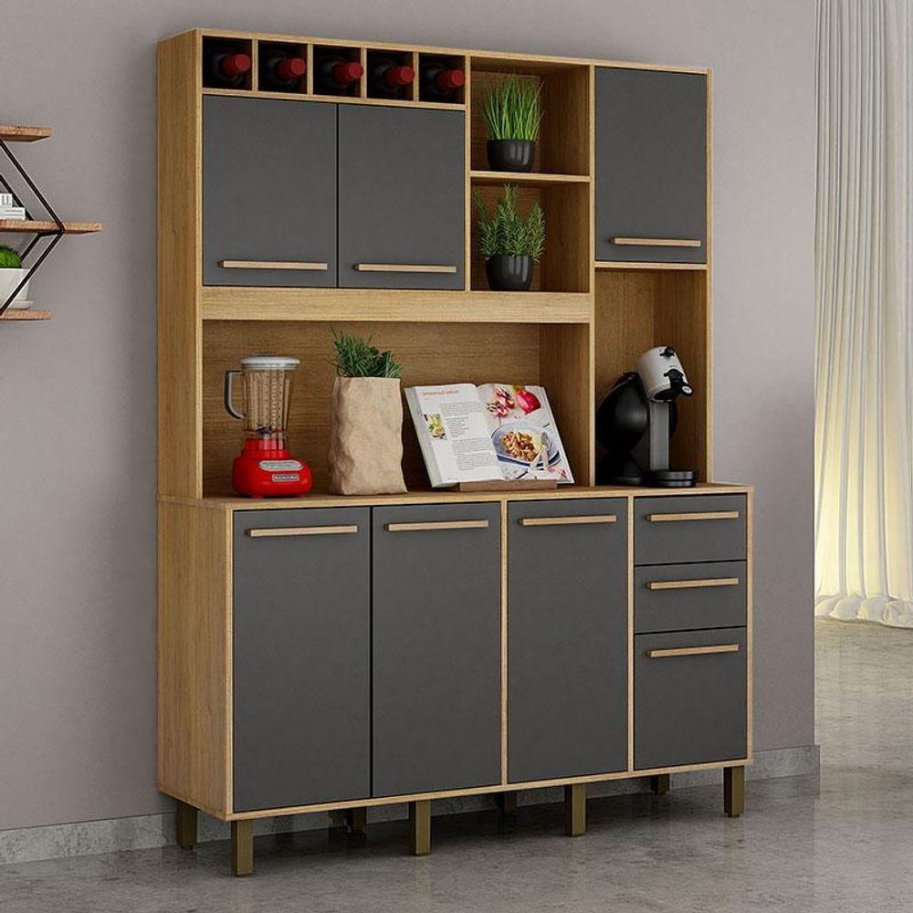 Armário De Cozinha Ambiente Granada Cinamomo Grafite - Valdemóveis