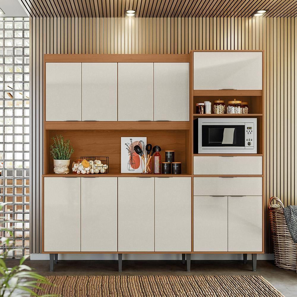 Armário de Cozinha Bahamas Compacta - Praticidade e Estilo para Seu LarTransforme sua cozinha em um espaço moderno e funcional com o Armário de Cozinha Bahamas Compacta da Lukaliam Móveis. Com 11 portas e 2 gavetas, este armário é a solução perfeita para quem busca organização e sofisticação no dia a dia.Espaço de Armazenamento InteligenteUm dos grandes diferenciais do Armário Bahamas é o seu amplo espaço de armazenamento. Com diversas portas, prateleiras e nichos, você poderá organizar seus utensílios e louças de maneira prática e acessível. Além disso, o armário conta com um espaço dedicado para micro-ondas, otimizando ainda mais a funcionalidade do seu ambiente.Atributos do ProdutoMarca: Lukaliam MóveisModelo: Bahamas 2.0Estrutura: 100% MDP 15mm, garantindo durabilidade e resistência.Gavetas: 2 gavetas com corrediças telescópicas, facilitando o acesso aos seus 10 portas, incluindo 1 porta basculante com pistão a gás para maior praticidade.Puxadores: Em ABS, oferecendo um toque moderno e elegante.Suporte de Peso: Suporta até 50kg, ideal para armazenar itens pesados.Pintura: Brilhante, que confere um acabamento sofisticado e fácil de ões: Altura 200cm, Largura 200cm, Profundidade 41 cm, perfeito para espaços de Montagem: Acompanha um manual detalhado para facilitar a montagem do produto.Qualidade e Estilo em um Só ProdutoO Armário de Cozinha Bahamas não é apenas funcional, mas também traz um toque de elegância para o seu lar. Seus materiais de alta qualidade e design moderno fazem dele uma peça chave para qualquer cozinha, deixando o ambiente mais sofisticado e acolhedor.Observações ImportantesAs imagens são meramente ilustrativas e os acessórios de decoração não estão inclusos. A não oferece de montagem, mas todos os móveis vêm com um manual de montagem passo a passo para facilitar o processo. Cor: Jequitiba/Areia | Marca: Lukaliam Móveis | Modelo: Bahamas | Altura: 200 cm | Largura: 200 cm | Profundidade: 41 cm | Requer Montagem: Sim | Quantidade de caixas de embalagem: | Cor: Jequitiba/Areia