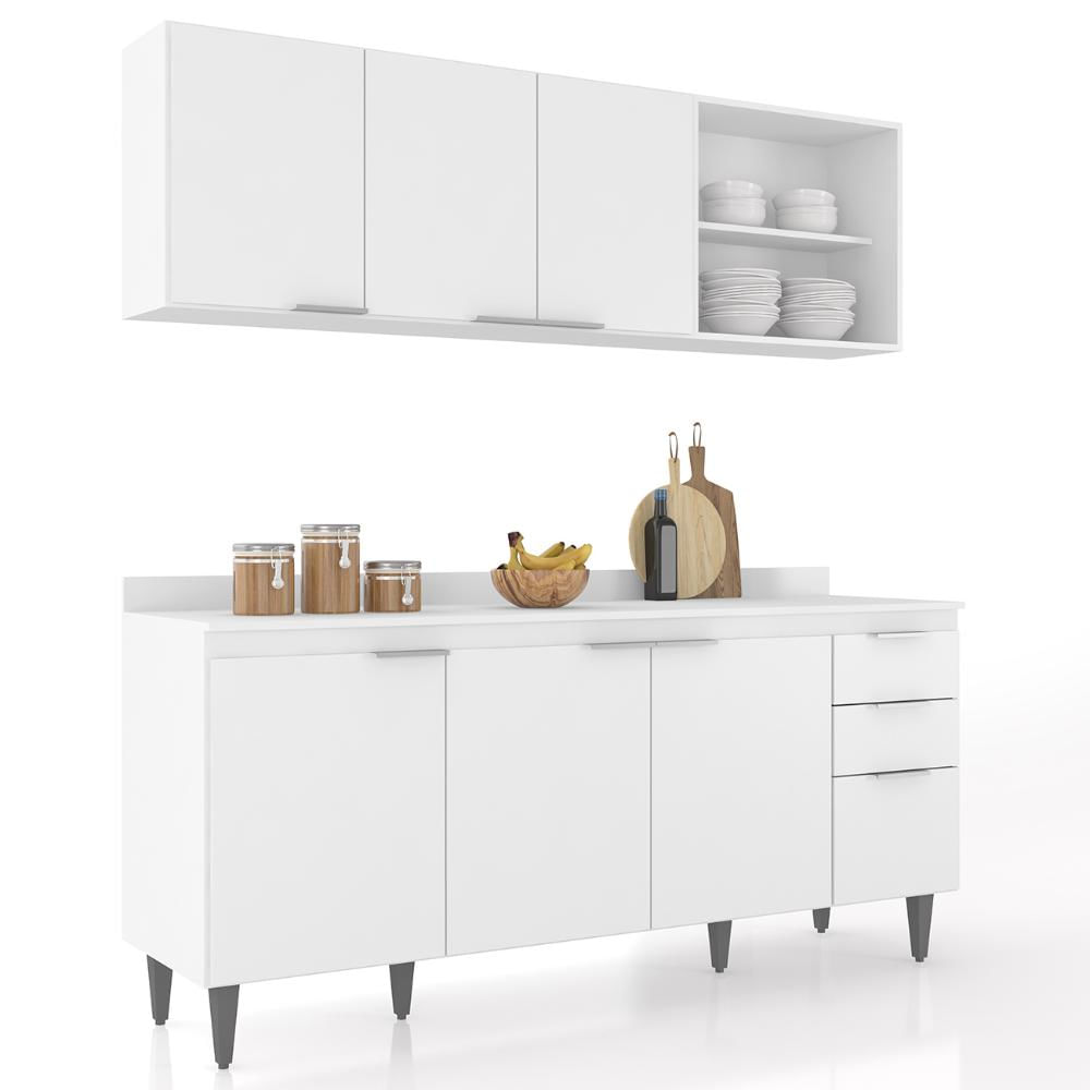 Armário de Cozinha Com Tampo CP10 180cm Pérola Branco Z34 - Mpozenato