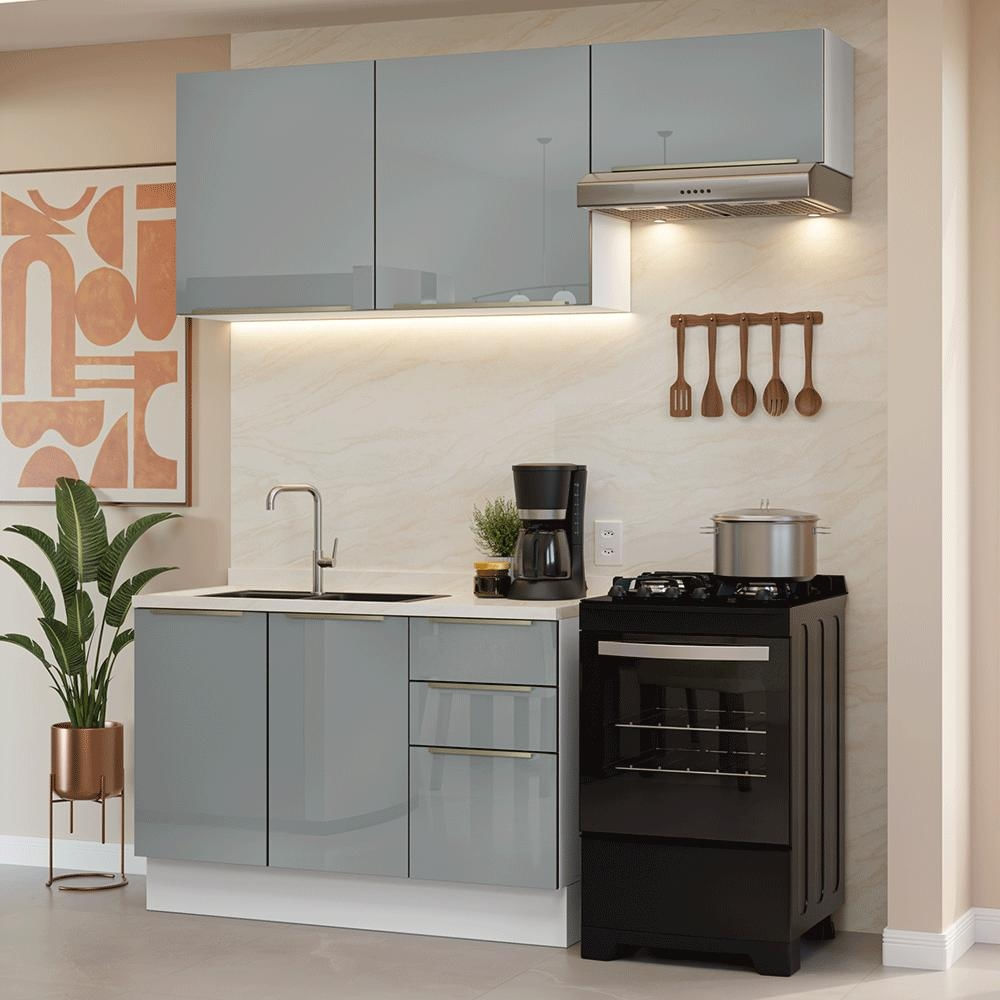 Armário de Cozinha Compacta 180 cm Branco/Cinza Lux Madesa 02 Branco/Cinza