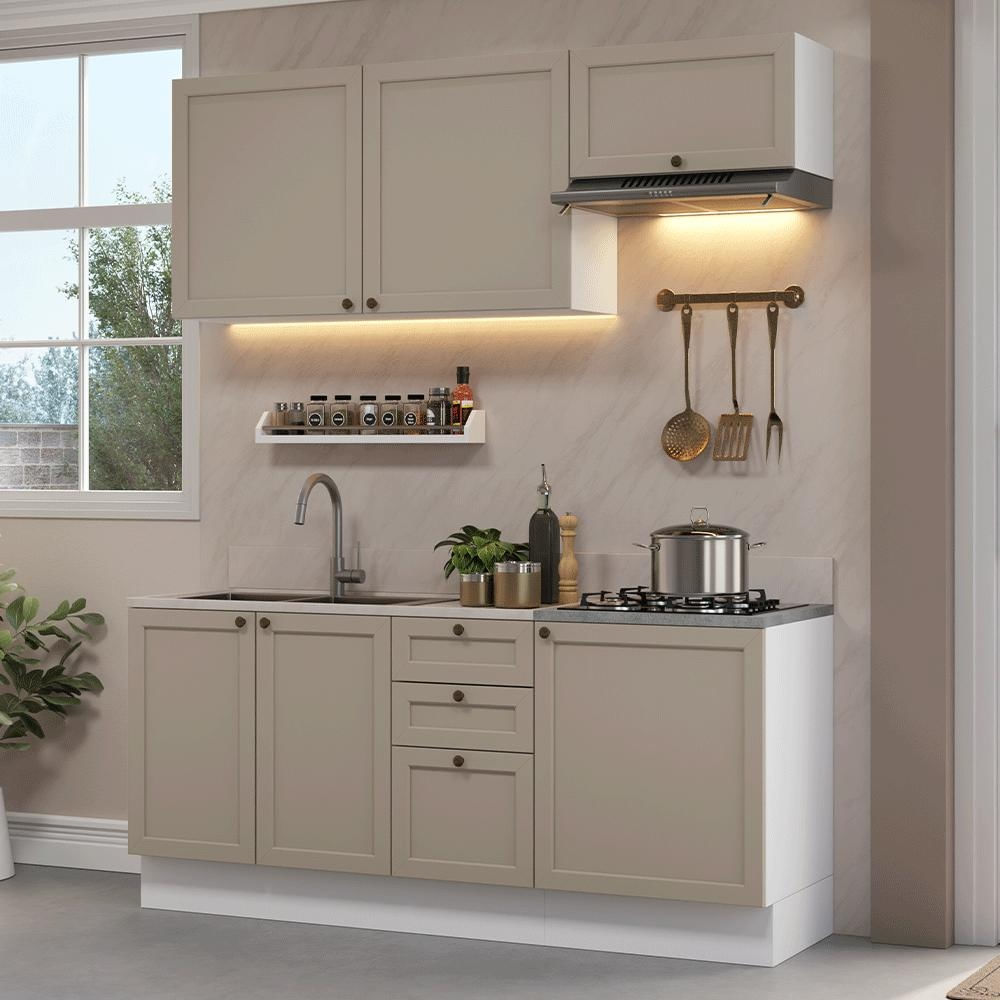 Armário de Cozinha Compacta 180 cm Branco/Crema Vik Madesa 01 Branco/Crema