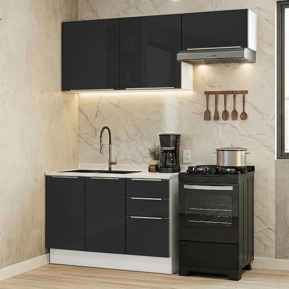 Armário de Cozinha Compacta 180 cm Branco/Preto Lux Madesa 03 Branco/Preto