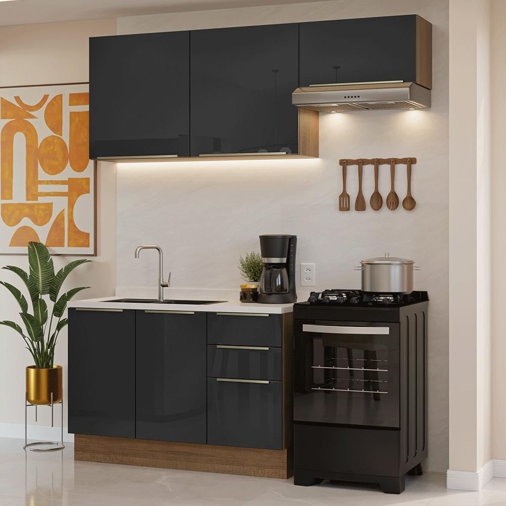 Armário de Cozinha Compacta 180 cm Rustic/Preto Lux Madesa 02 Rustic/Preto