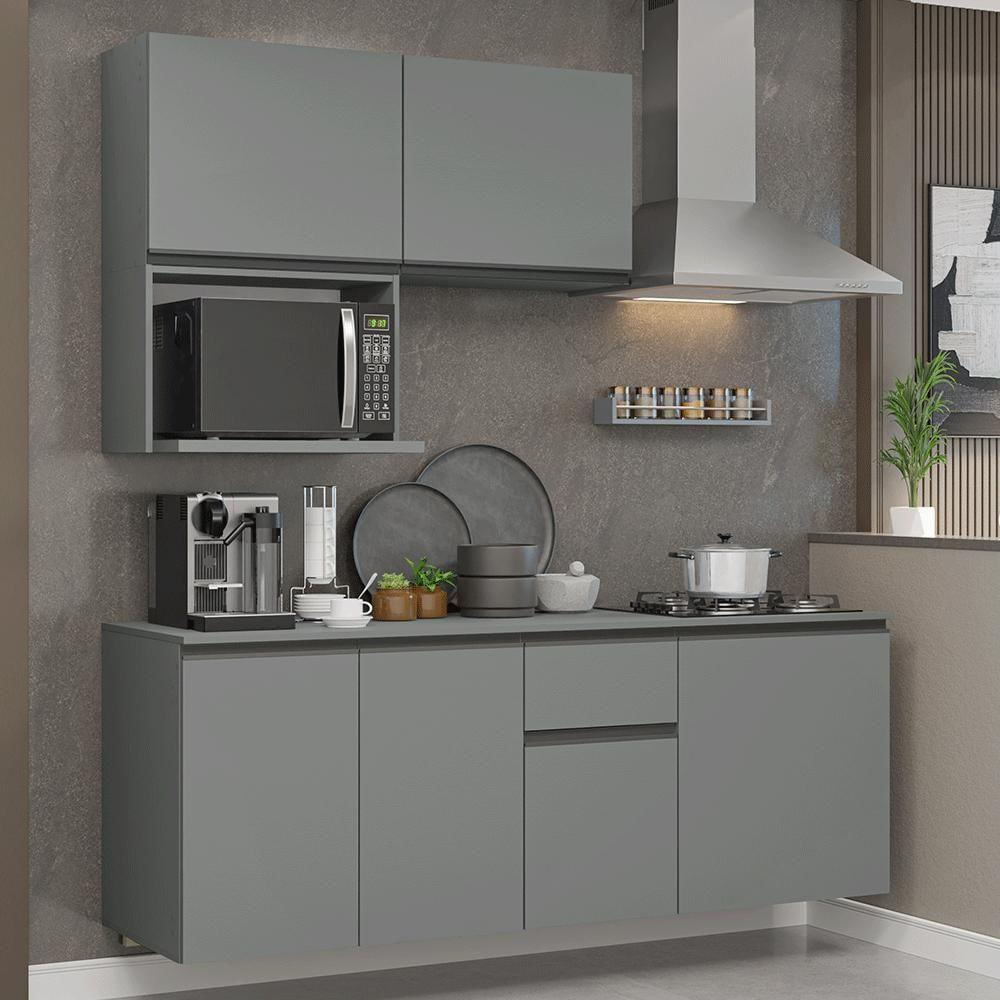 Armário De Cozinha Compacta 180 Cm Suspensa Cinza Nice Madesa 03 Cinza