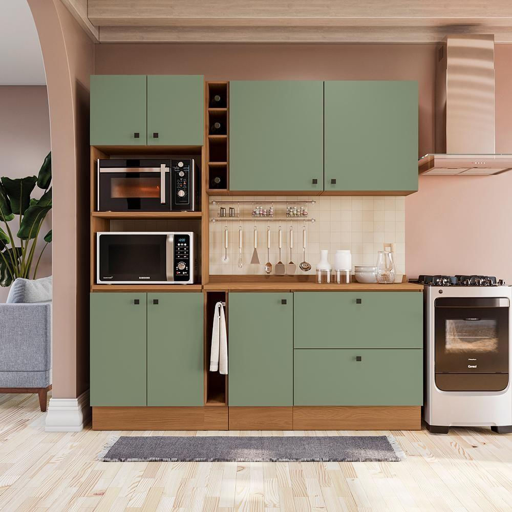 Armário De Cozinha Compacta 205cm Canela/verde Frevo Pixel Kappesberg