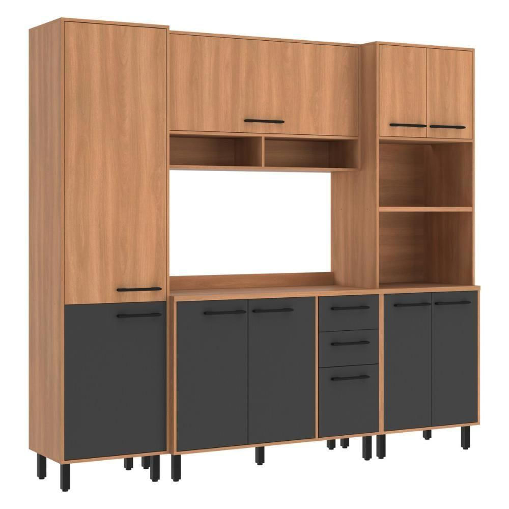 O Armário de Cozinha Compacta Modulada 4 Peças Havana Multimóveis CR20329 é perfeito para agregar funcionalidade e estilo no seu lar. É composto por 4 módulos individuais que oferecem liberdade total para dispor do jeito que melhor se encaixarem no ambiente. Produzido em MDP (15mm/tampos 25mm) com acabamento acetinado (cerca de 20% de brilho), garante durabilidade e resistência. Com amplo espaço interno para organização, possui 10 portas e 2 gavetas com corrediças telescópicas, que proporcionam um manuseio suave e silencioso. A porta basculante com pistão constante no armário aéreo permite um manuseio seguro e facilidade na organização dos utensílios de cozinha. Além disso, conta com espaço para forno/micro-ondas, balcão com tampo removível que suporta até 30kg e é compatível com pia de 120cm. Para conferir elegância e estabilidade aos módulos, esta linda cozinha acompanha puxadores e pés em PVC com regulagem de altura. Conteúdo da Embalagem: 1 (um) Armário para Forno e Micro-Ondas 65cm 1 (um) Paneleiro 55cm 1 (um) Armário Aéreo 120cm 1 (um) Balcão com Tampo 120cm Manual de Montagem Kit Ferragem