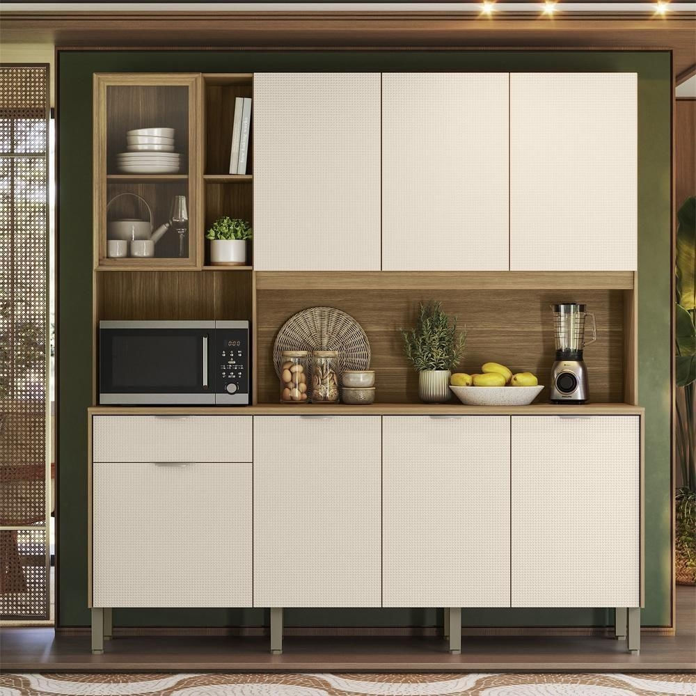Armario de Cozinha Compacto 8 Portas Kits Paraná NatureTenha mais organização, praticidade e um toque de sofisticação na sua cozinha com um móvel completo e bem distribuído. Produzido em MDP de 12 e 15 mm, ele oferece boa resistência para o uso diário e um acabamento moderno.