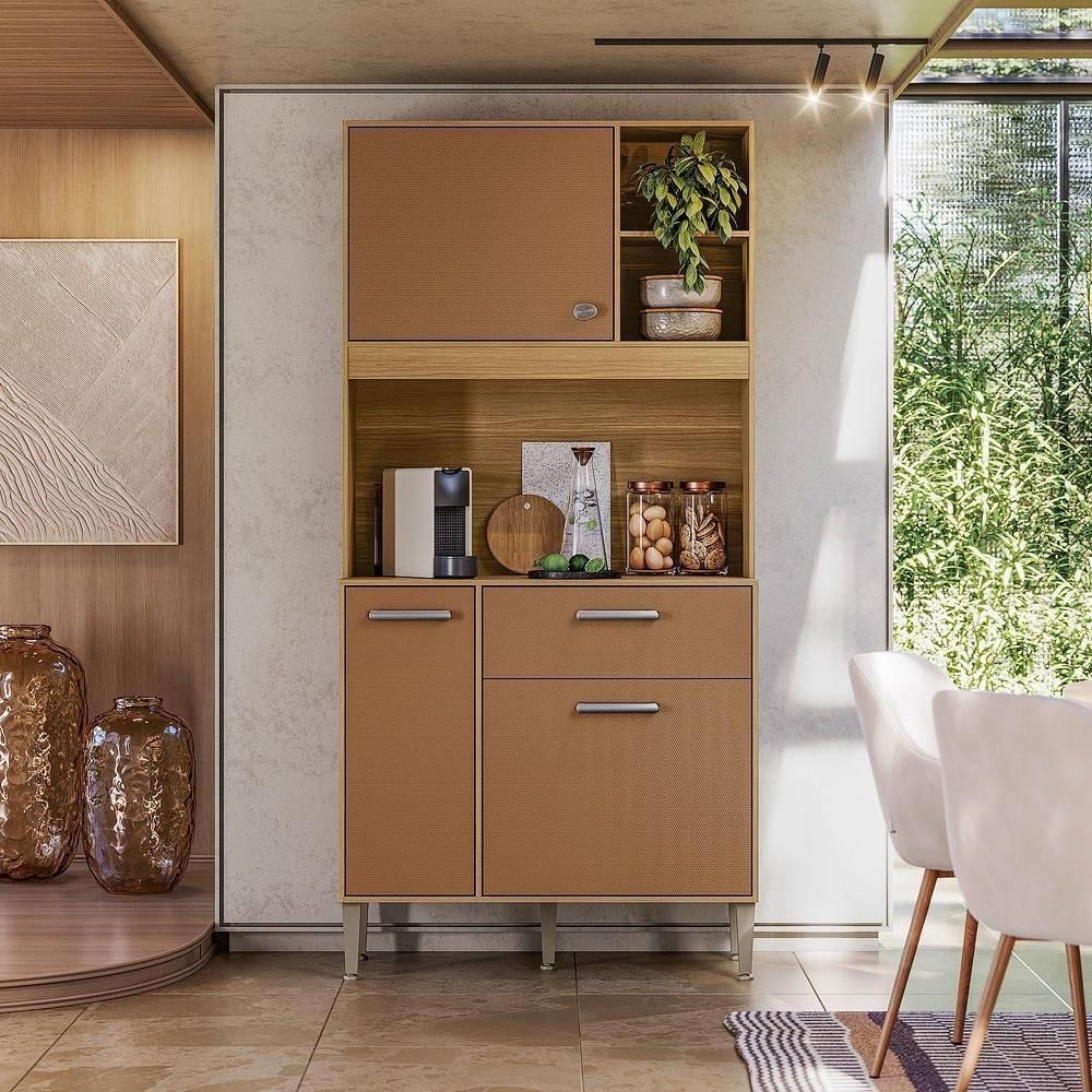 Armário De Cozinha Compacto Zen 3 Portas 1 Gaveta Com Nicho Decorativo 0,90m - Freijó/caramelo