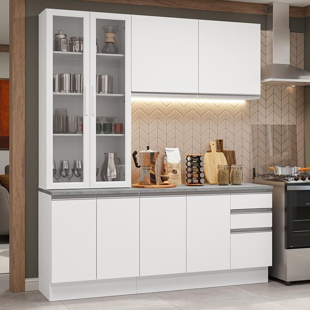 Armário De Cozinha Completa 190cm Branco Glamy Madesa 05 Branco