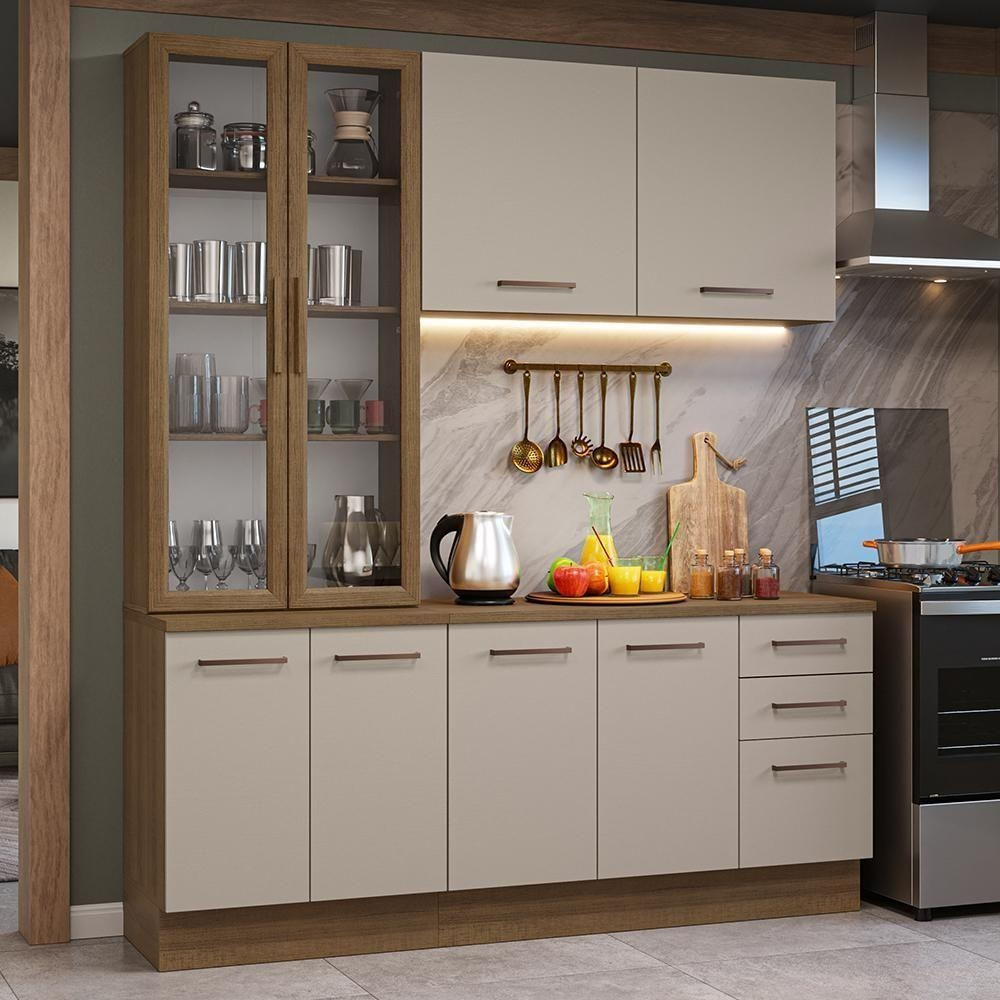 Armário De Cozinha Completa 190cm Com Cristaleira Agata Madesa Rustic Crema