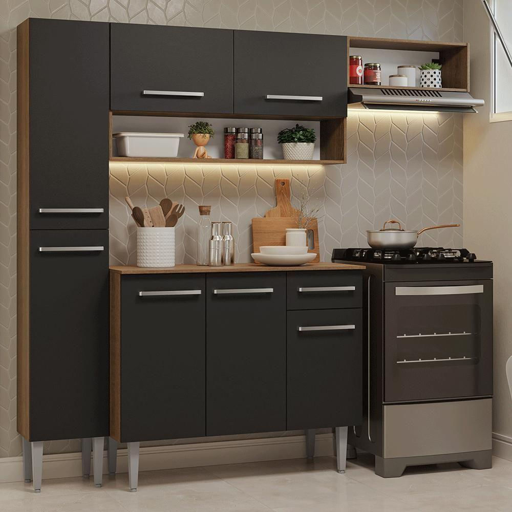 Armário De Cozinha Completa 197 Cm Rustic-preto Emilly Madesa 02