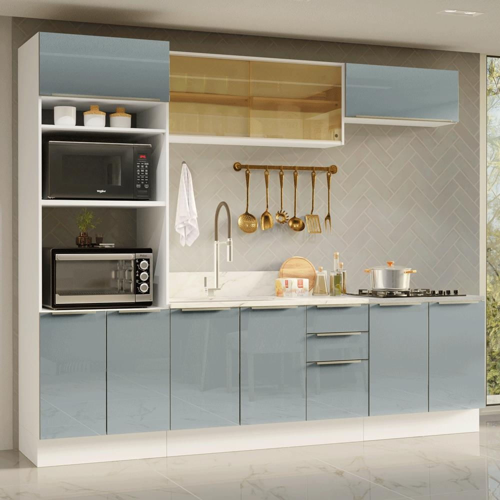 Armário de Cozinha Completa 270 cm Branco/Cinza Lux Madesa 06 Branco/Cinza