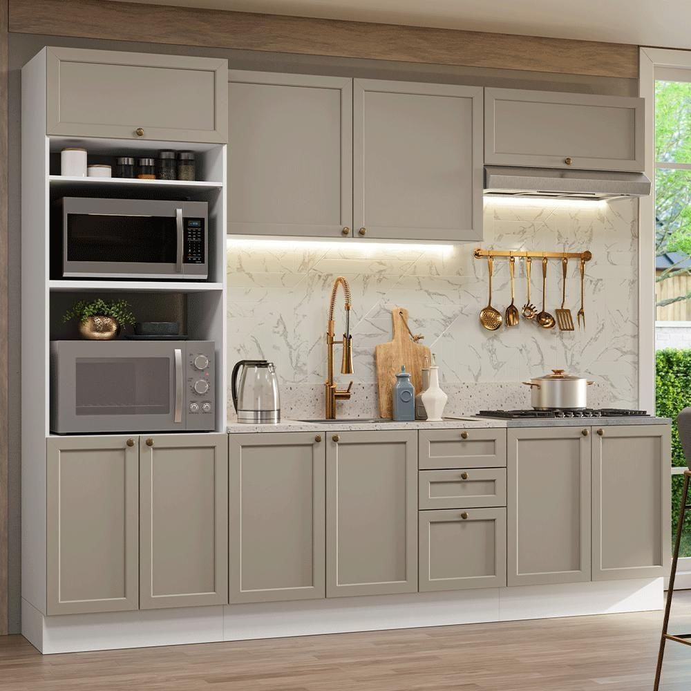 Armário De Cozinha Completa 270 Cm Branco/crema Vik Madesa 01 Branco/crema